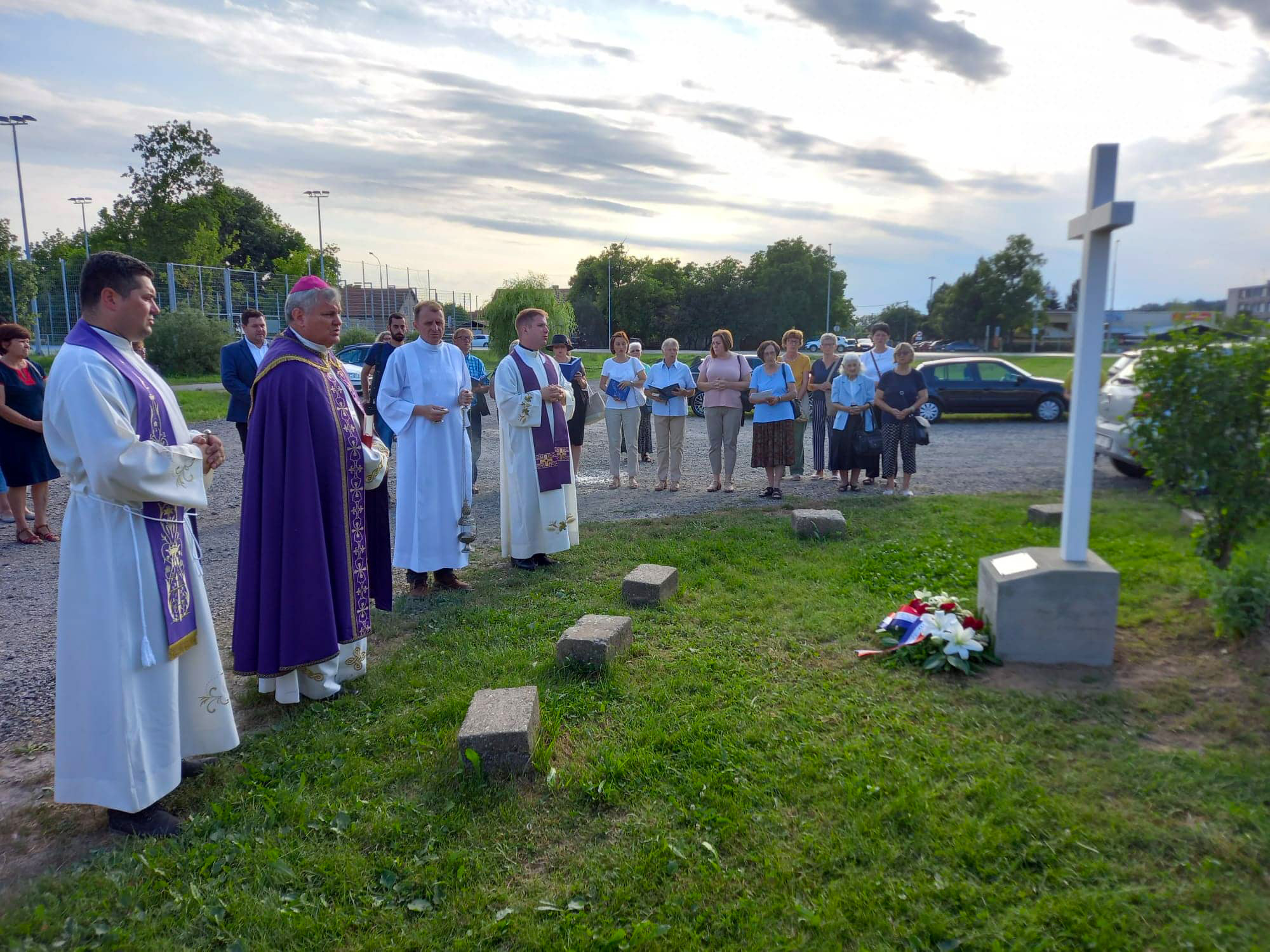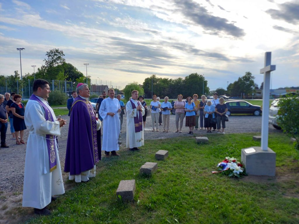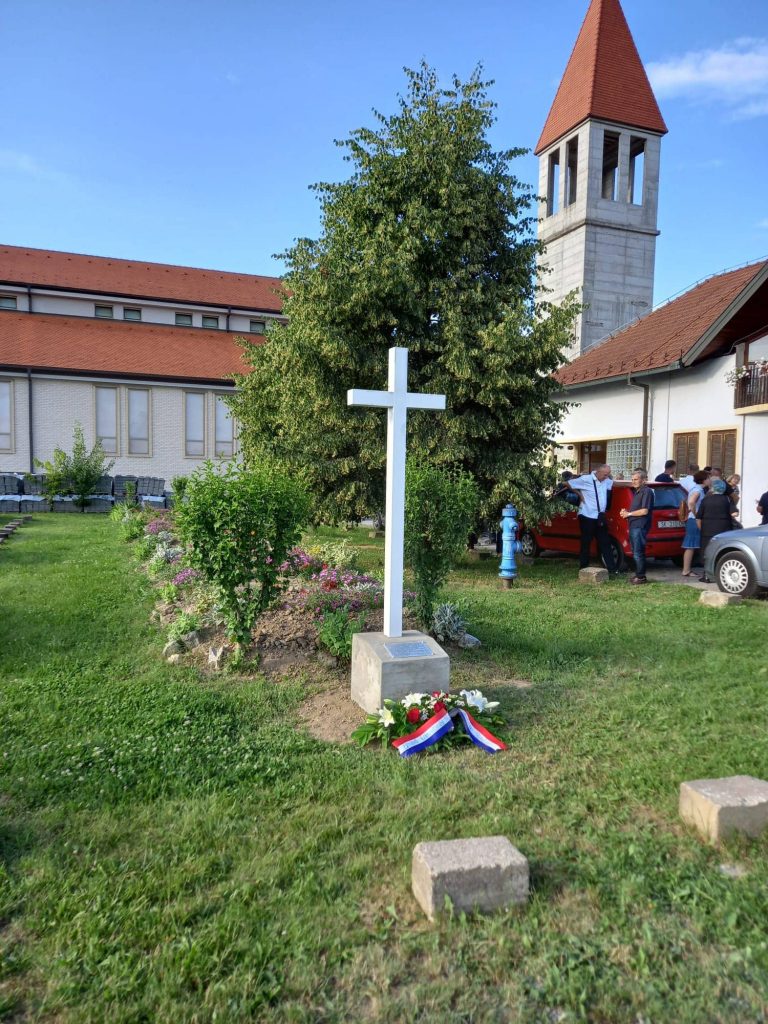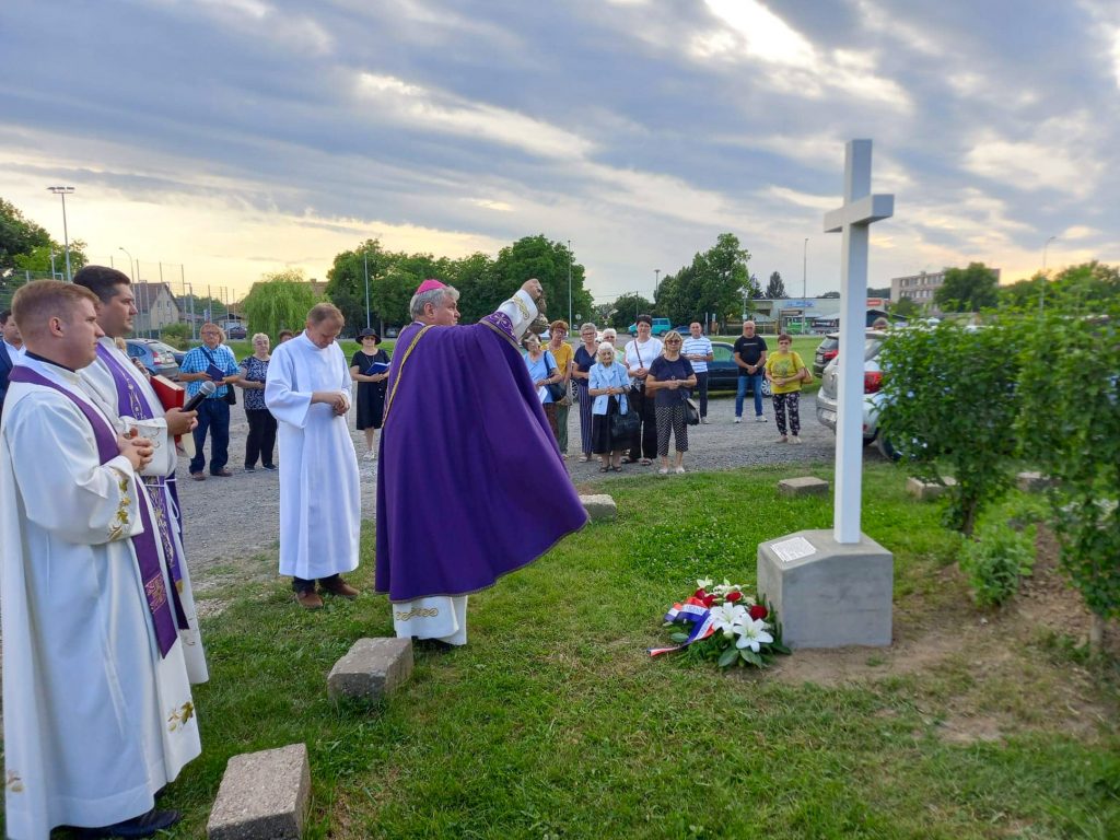 Križ je blagoslovio biskup Vlado Košić koji je potom predvodio u crkvi Sv. Marije Kraljice Mira misu za sve stradale, u zajedništvu sa župnikom Ivanom Faletarom i kapelanom Rafaelom Mlinarom.