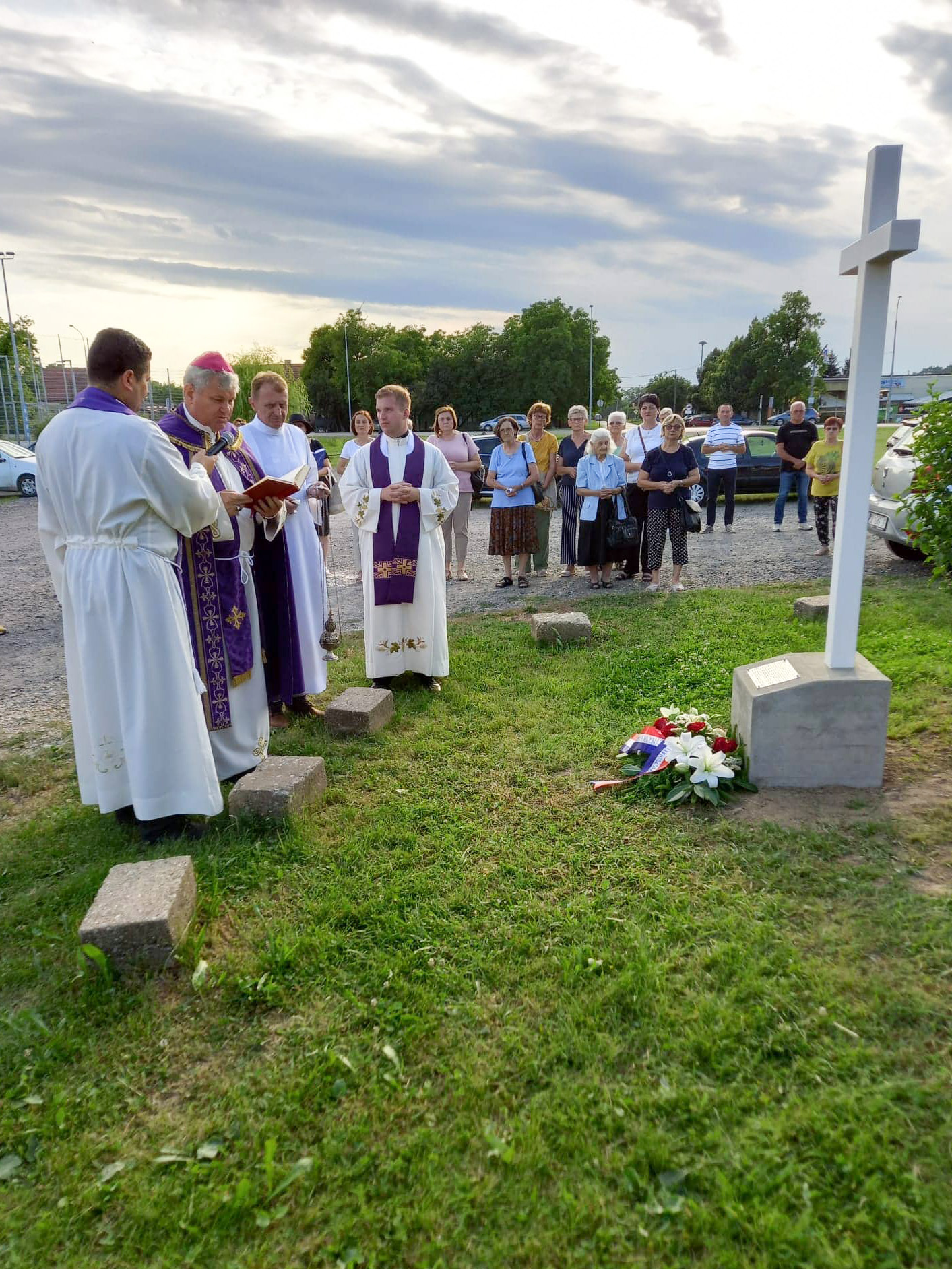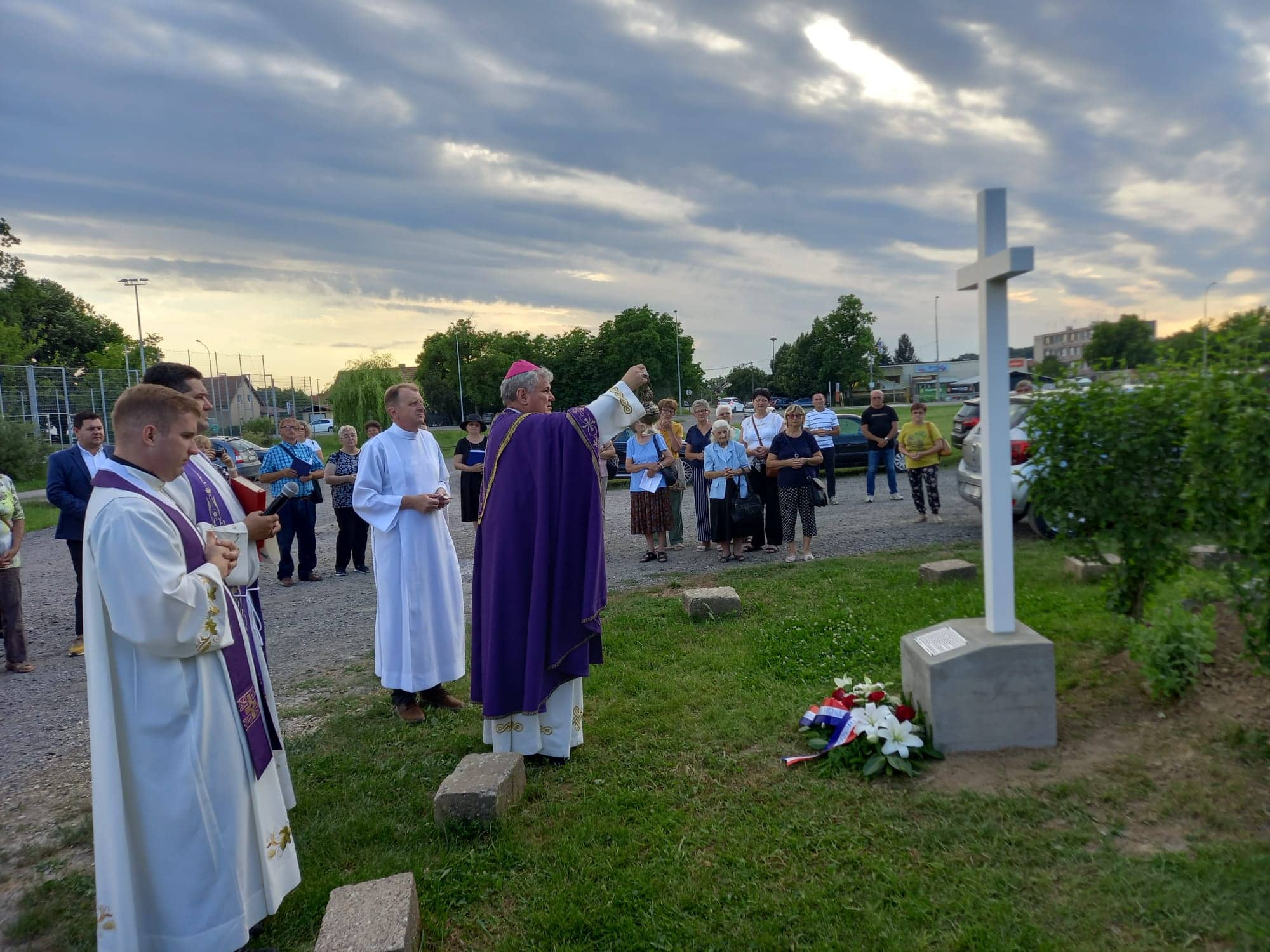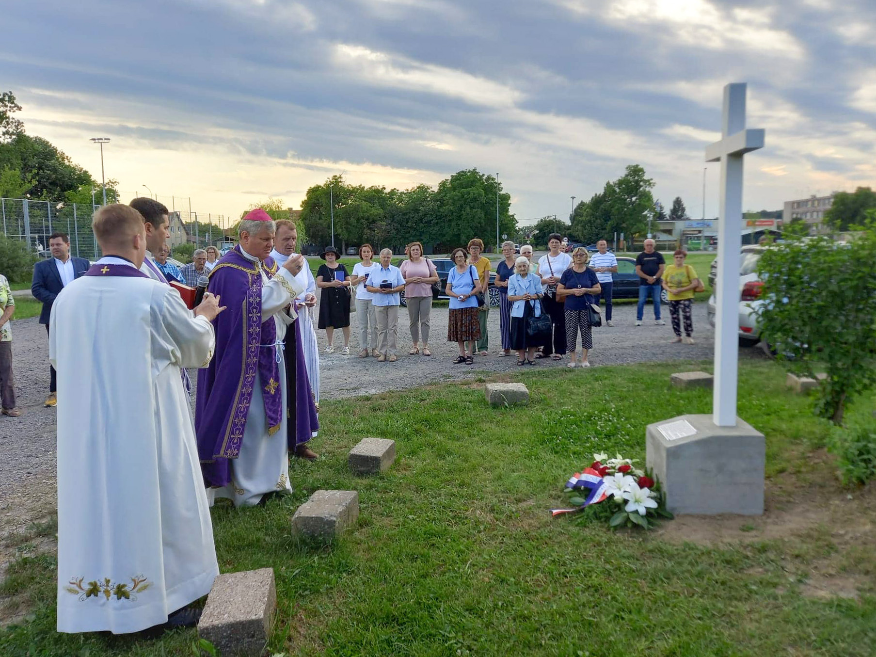 Križ je blagoslovio biskup Vlado Košić koji je potom predvodio u crkvi Sv. Marije Kraljice Mira misu za sve stradale, u zajedništvu sa župnikom Ivanom Faletarom i kapelanom Rafaelom Mlinarom.