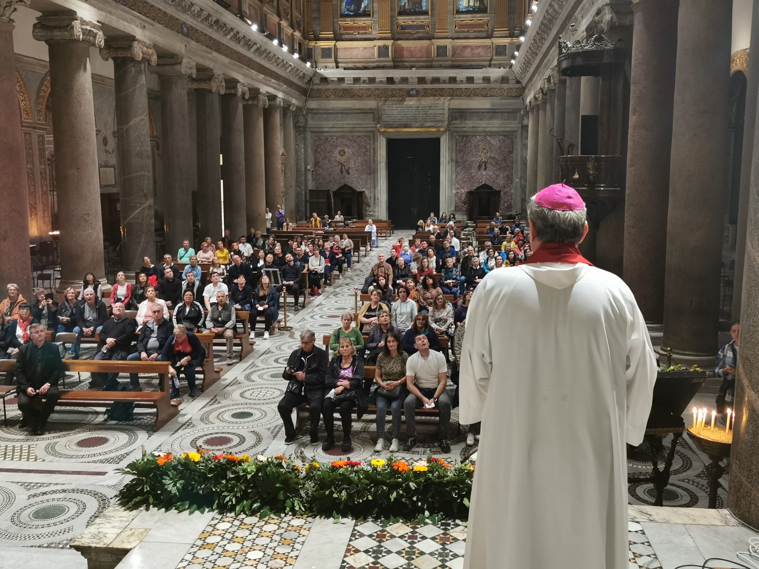 U homiliji uz osvrt na pročitanu Božju Riječ biskup je podsjetio i kako je Rim mjesto koji svjedoči početku naše vjere, pokrštenju Hrvata. „Naime, u 7. stoljeću, točnije 641. benediktinski opat Martin, kojega je poslao papa Ivan IV., došao je u našu Dalmaciju i Istru i uspostavio prve kontakte s našim hrvatskim narodom koji je tek stigao u novu domovinu. Papa se bojao da će taj novi nekršćanski narod uništiti kršćanske svetinje pa je želio da njegov izaslanik donese na sigurno, u Rim, moći svetih solinskih i istarskih mučenika, među kojima se ističu sv. Dujam i sv. Venancije, salonitanski biskupi i mučenici te sv. Maurus, istarski biskup i mučenik“.