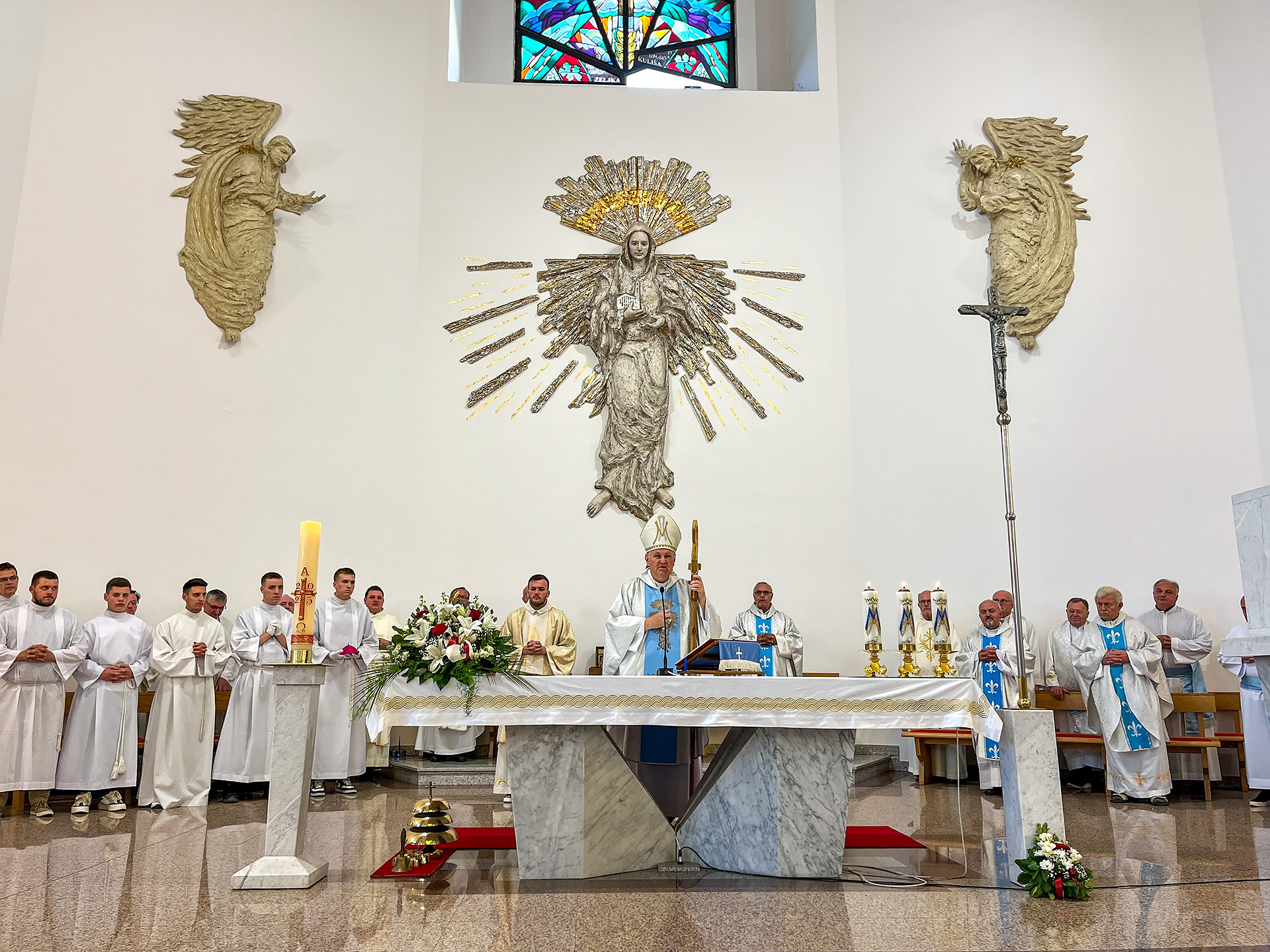 Biskup Vlado Košić u propovijedi je istaknuo važnost blagdana Marije, Majke Crkve, naglasivši kako je Marija uzor majčinske brige i vjernosti Crkvi. Podsjetio je na njezinu prisutnost u konstituciji Lumen gentium, gdje se prikazuje kao uzor vjere i ljubavi, te istaknuo doprinos kardinala Šepera tom učenju.