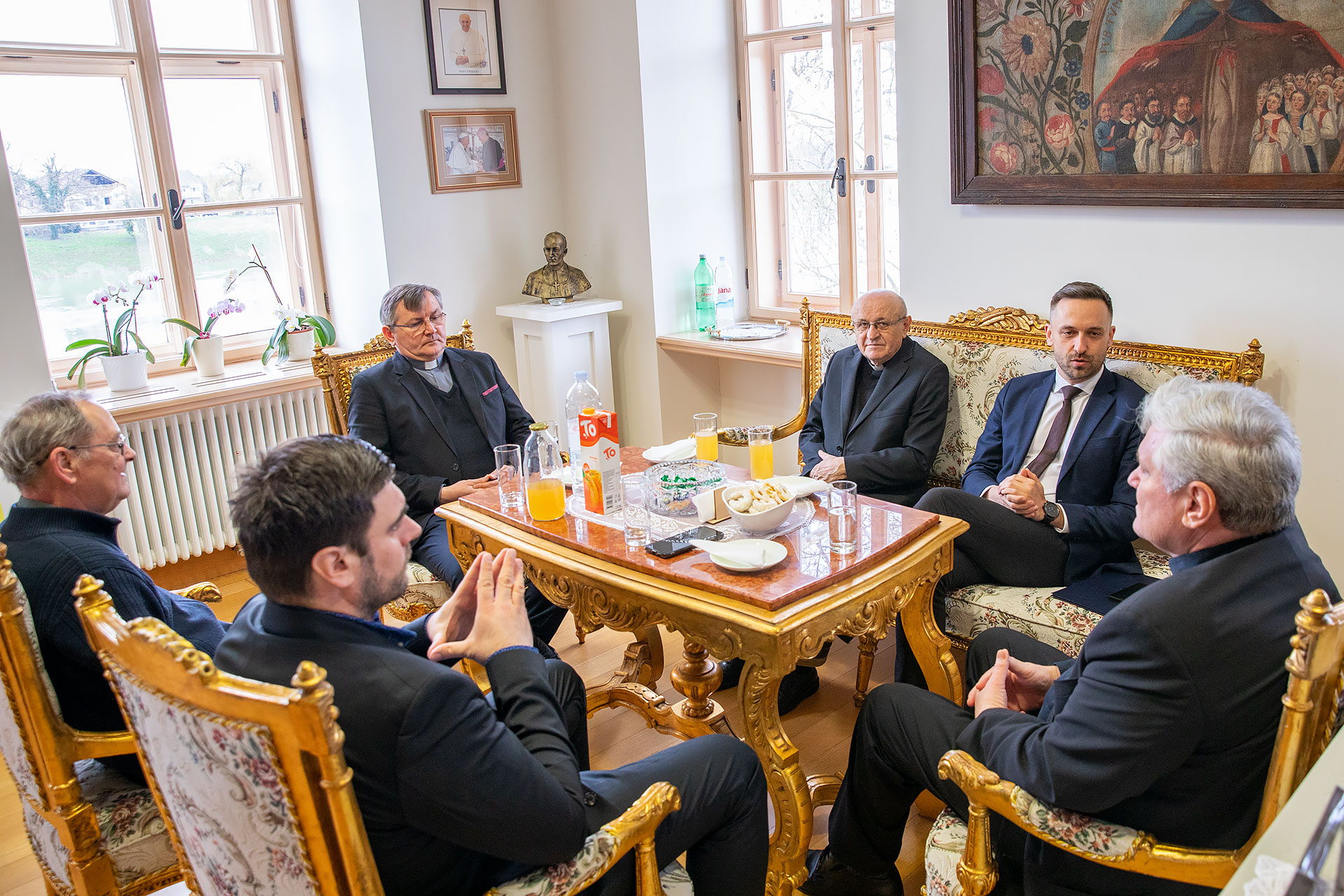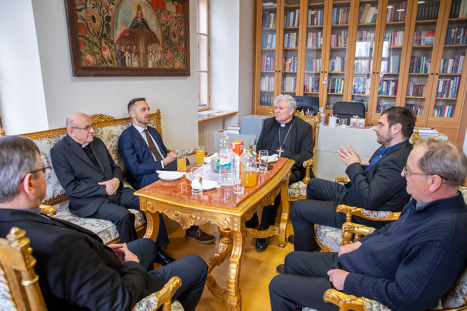 S biskupom su na tom susretu sudjelovali najbliži suradnici: generalni vikar mons. Ivica Mađer, biskupijski ekonom mons. Zdravko Novak i biskupski vikar za kler mons. Marko Cvitkušić. Razgovaralo se o obnovi u potresu stradalih kuća i škola kao i o suradnji predmetnog ministarstva s biskupijskim Caritasom.