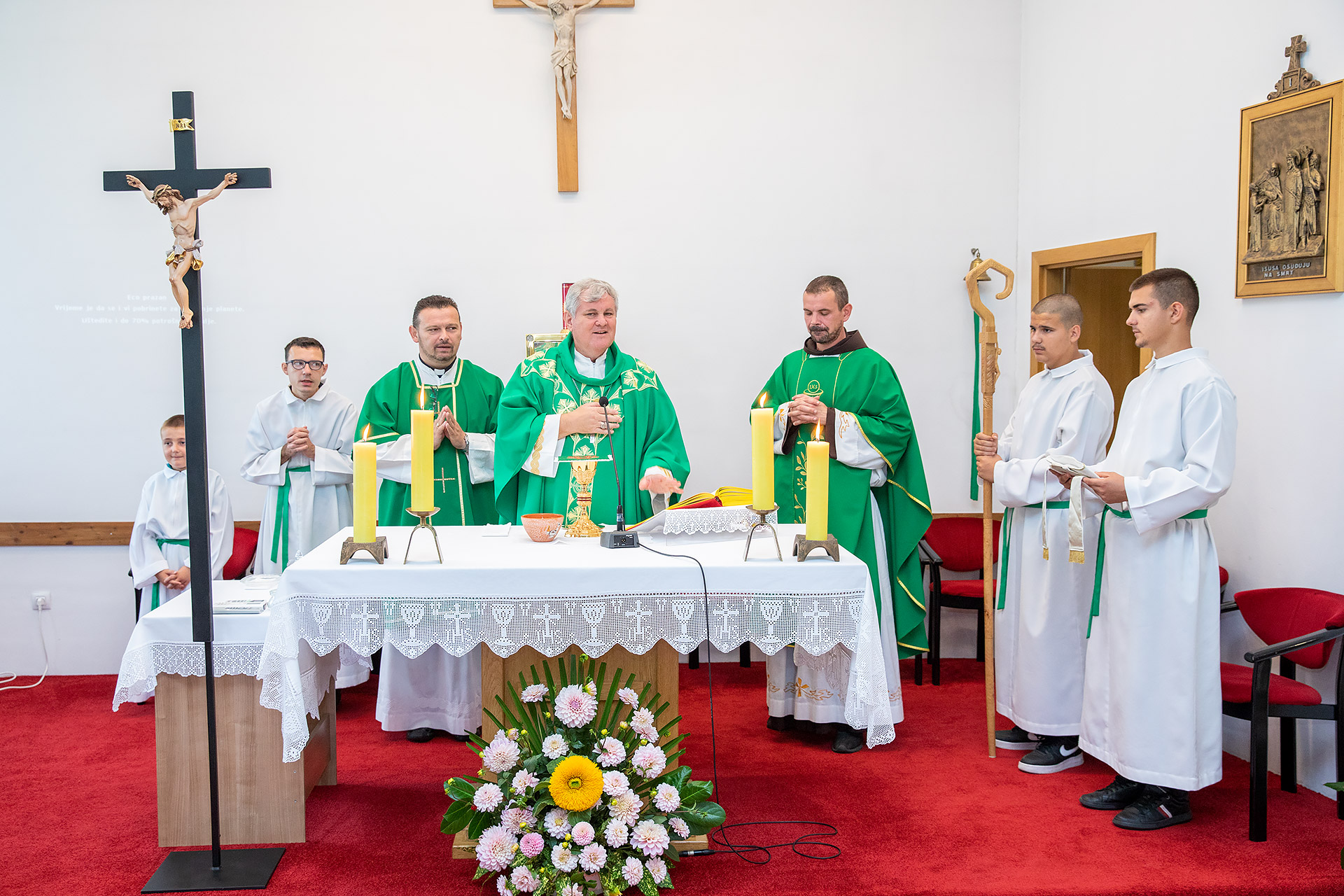 Sisački biskup Vlado Košić predvodio je u nedjelju 28. kolovoza svečano misno slavlje u bogoslužnom prostoru župe sv. Ivana Pavla II. u Petrinji i tom prigodom u službu uveo novog župnika ove župe fra Matu Bašića.
