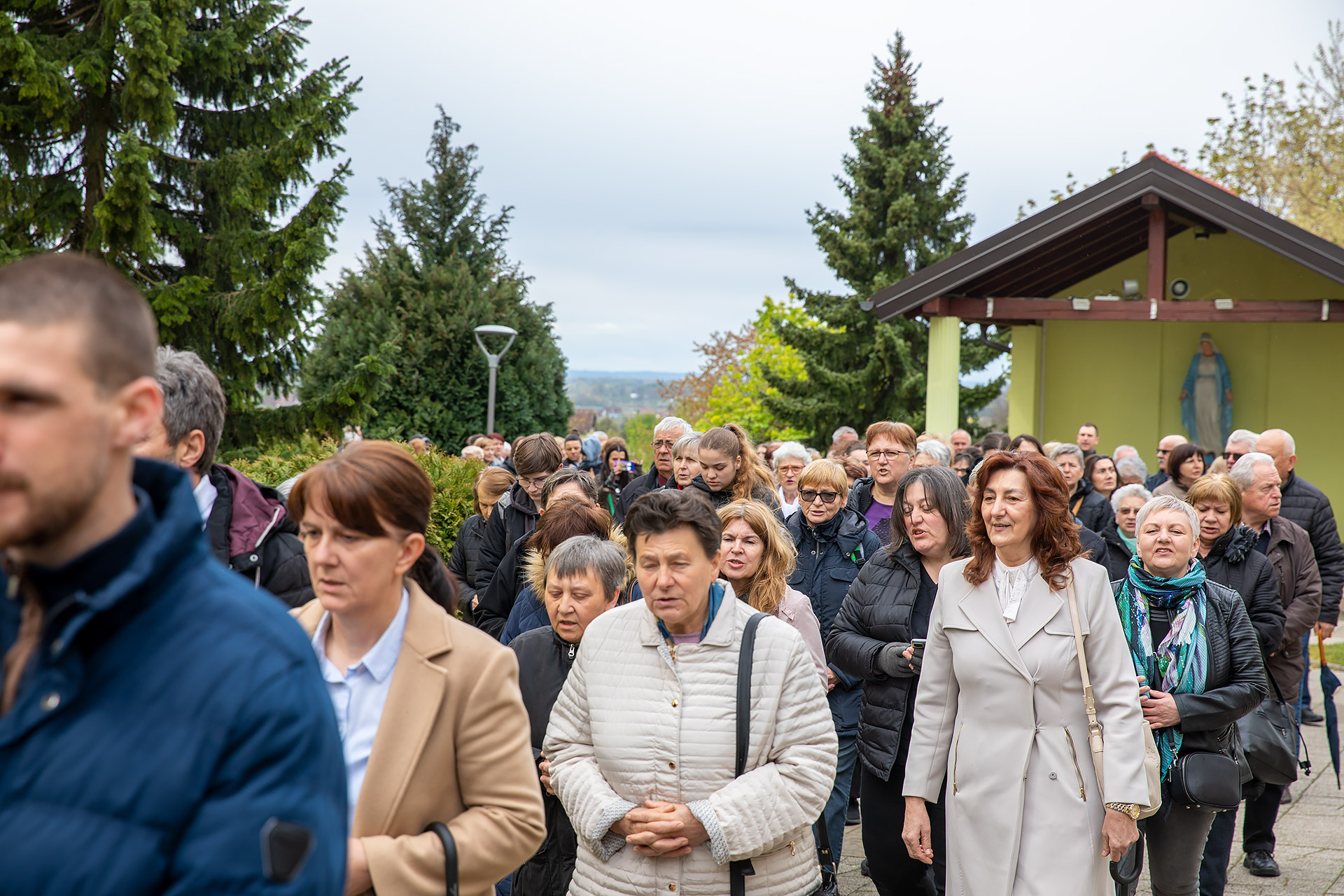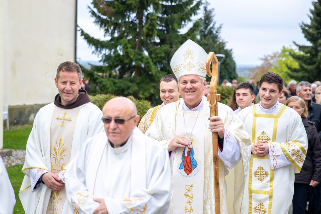 Biskup je podsjetio kako se na ovom jestu Marija stoljećima časti kao Majka Milosrđa. „Papa Ivan Pavao II. ustanovio je na Bijelu nedjelju, tj. na drugu vazmenu nedjelju, Nedjelju Božjeg milosrđa. Milosrđe je Božje neizmjerno i možemo reći ishodište je Isusove muke na križu. Bog je svoga Sina dao za nas ljude da nas spasi od grijeha i smrti upravo svojom žrtvom na križu. Tako je pokazao svoje veliko milosrđe prema nama grješnicima. A majka Isusova je Marija, pa i nju smijemo zvati Majkom Milosrđa jer je Isus drugo ime za Božje milosrđe. Tako milosrđe Božje nije nešto nego netko, tj. osoba Isusa Krista, Sina Božjega. On je Očeva Riječ, onaj koji je u svom životu, riječima i djelima, a napose svojom smrću i uskrsnućem izrekao tko je Bog, prenio nama ljudima poruku o Bogu. Bog je neizreciv i neizmjeran no ipak je želio da ga njegov Sin objavi i nama ljudima predstavi kao Oca, kao Ljubav, kao neizmjerno Milosrđe. Na milosrđe najčešće mi ljudi pomislimo kad sagriješimo, kad se susretnemo sa svojom i tuđom grješnošću. Ako je grijeh velik, pitamo se, može li Bog to oprostiti. Kada gledamo ubojstva u ratu u Ukrajini, kad slušamo o otmicama, mučenju i nasilju nad kršćanima u Siriji ili u zemljama Afrike, pitamo se može li Bog oprostiti ljudima takve strašne u nebo vapijuće grijehe. Kad bismo Gospodina to pitali, on bi nam odgovorio prispodobama o milosrdnom Ocu koji prima svog izgubljenog sina koji ga je ostavio i pola mu imanja rasuo… on bi nam govorio o milosrdnom Samarijancu koji je imao volje, vremena i srca pobrinuti se za izranjenog putnika kojega su drugi zaobilazili“, poručio je biskup.