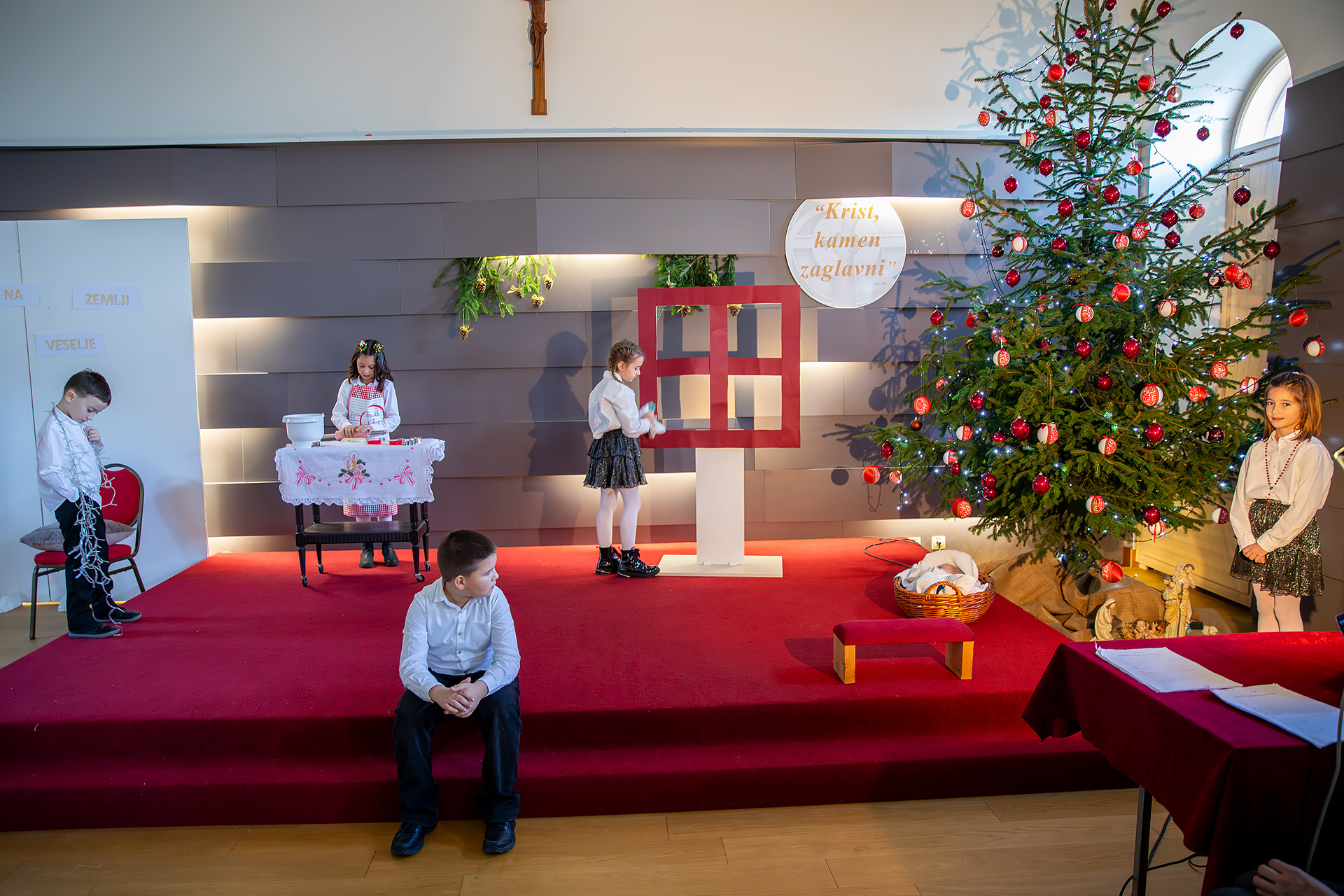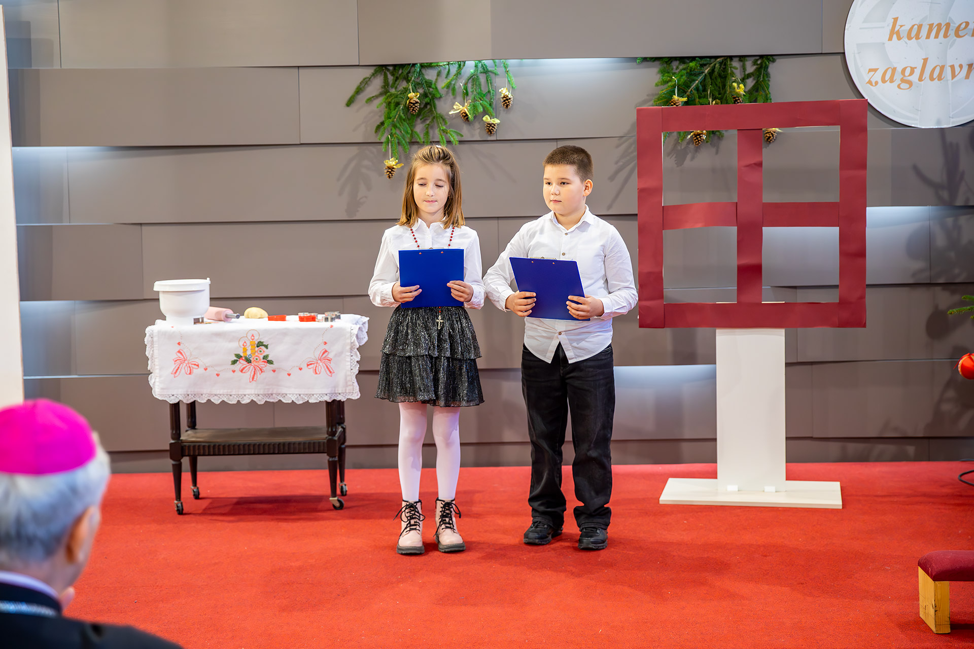 Prije samog čestitanja, svećenici i redovnici okupili su se u Pastoralnom centru katedralne župe, gdje su sudjelovali u pokorničkom bogoslužju. U glazbeno-scenskom programu nastupila su djeca i djelatnici Katoličke osnovne škole.