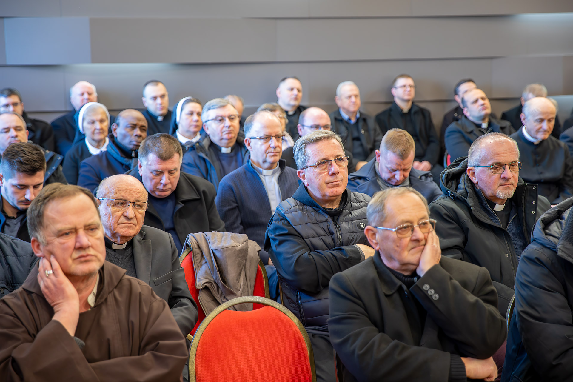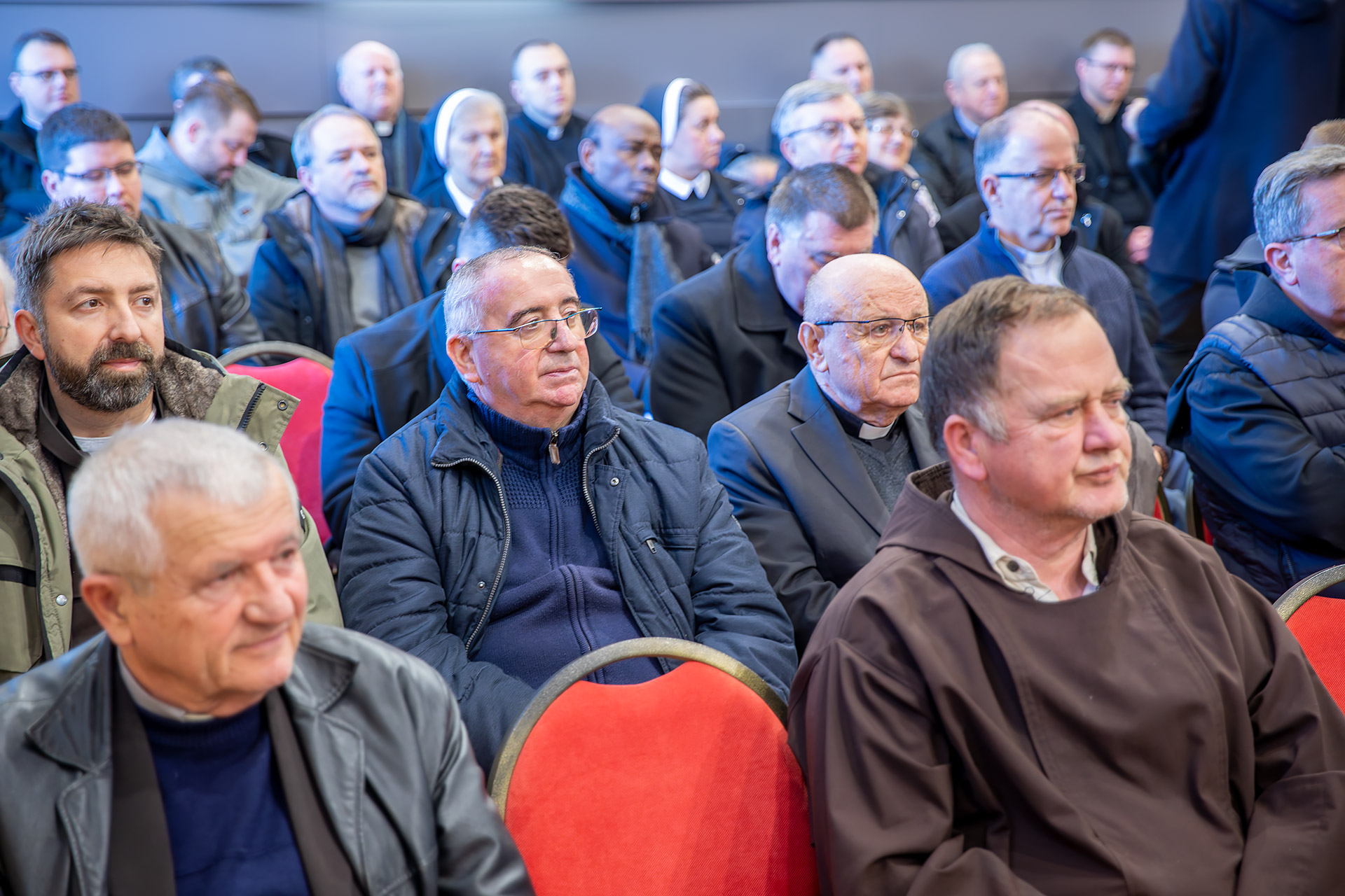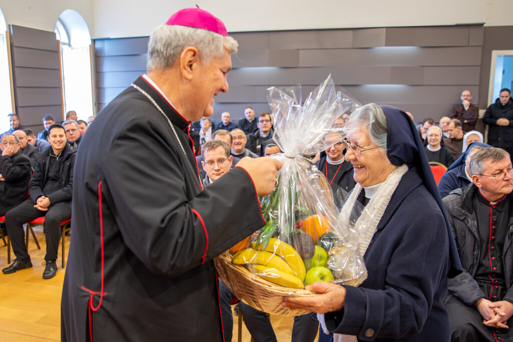 U ime redovnika i redovnica okupljenima se obratila s. Snježana Pavić, zahvalivši Bogu za proteklu jubilarnu godinu. Naglasila je važnost praštanja i povjerenja u Boga u vremenu obilježenom nesigurnostima, ratovima i patnjama mnogih ljudi. Zahvalila je biskupu na njegovoj blizini, brizi i potpori redovničkim zajednicama, kao i na posebnoj osjetljivosti prema najslabijima, obiteljima, djeci i mladima, što se očituje u pastoralnim i odgojnim projektima biskupije. Uputila je božićnu poruku mira, nade i povjerenja u Krista – Emanuela.