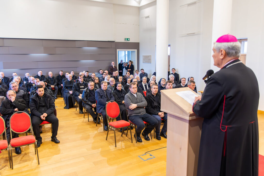 Na početku susreta okupljenima se, u ime svećenika, obratio generalni vikar Ivica Mađer, osvrnuvši se na proteklu jubilarnu godinu koja je, kako je istaknuo, bila iznimno bogata duhovnim i pastoralnim događanjima u životu sisačke Crkve. Posebno je izdvojio nacionalno jubilejsko hodočašće u Rim, na kojem je od 6. do 9. listopada sudjelovalo oko 500 vjernika biskupije. Povezano s Rimom, spomenuo je i važan korak u postupku beatifikacije sluge Božjega Ivana Bonifacija Pavletića, budući da je krajem studenoga biskupu predan službeni dokument rimske faze tog procesa, u kojem je cjelovito izložen dokaz njegove svetosti.