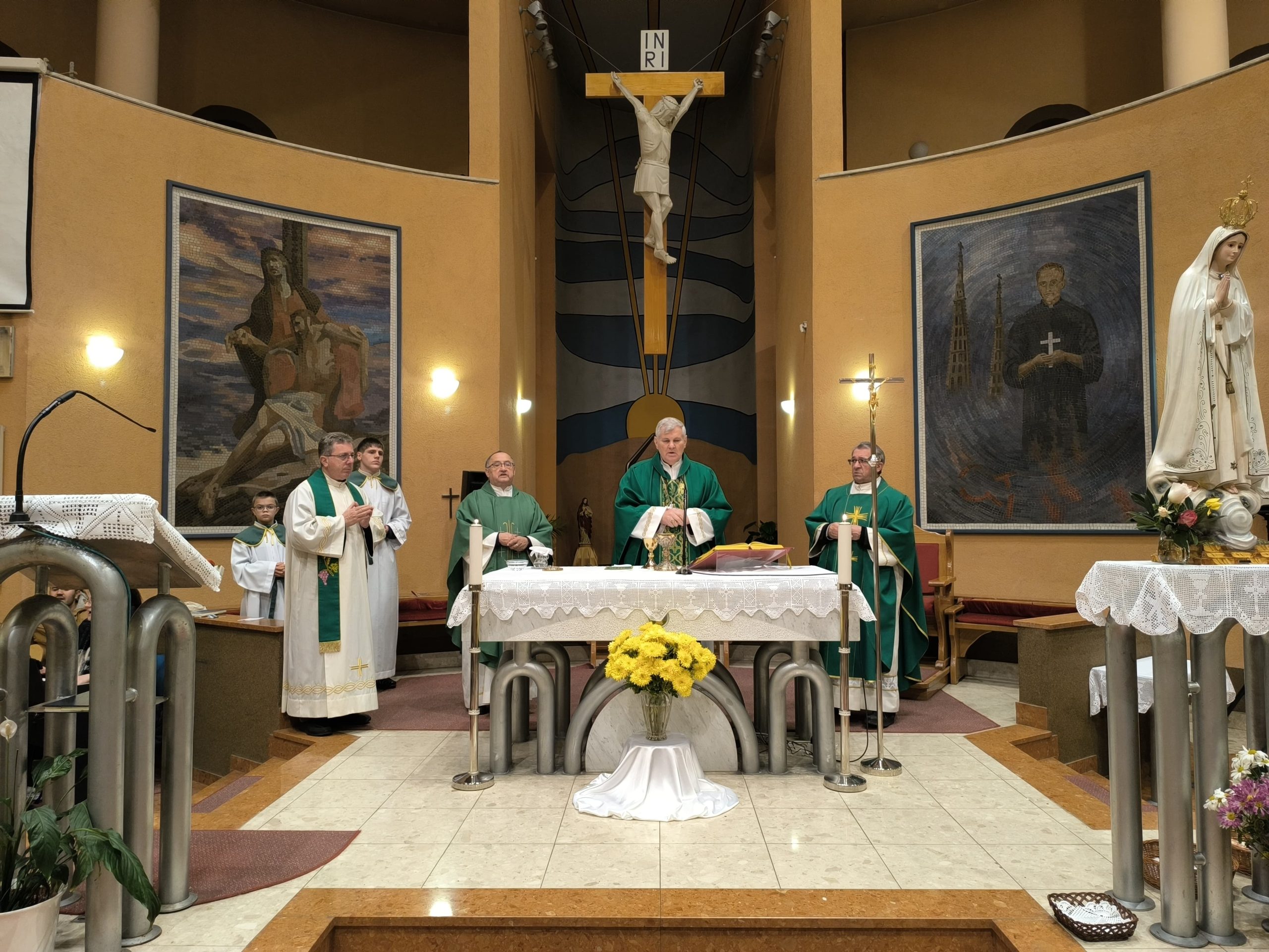 Nakon susreta, svi sudionici sudjelovali su na svetoj misi koju je predvodio biskup Košić, uz koncelebraciju domaćeg župnika Krešimira Bulića, župnika iz Viduševca Nikole Majcena i župnika sisačke župe sv. Josipa Radnika fra Ivana Bradarića, dok je đakon Croat Balija posluživao.
