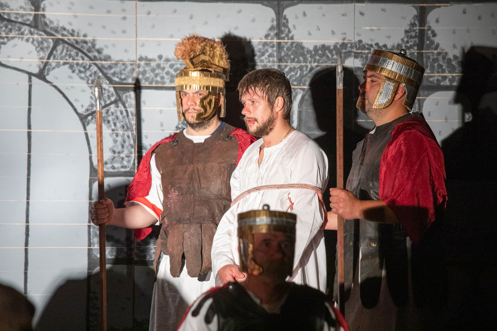 Ulogu Isusa snažno je iznio Bruno Marjanović, dok je lik Marije utjelovila Štefica Marjanović. Cijeli glazbeno‑scenski prikaz režirao je vjeroučitelj Vlado Sučec, čija je režija pridonijela jasnom i emotivnom prenošenju poruke Kristove žrtve.