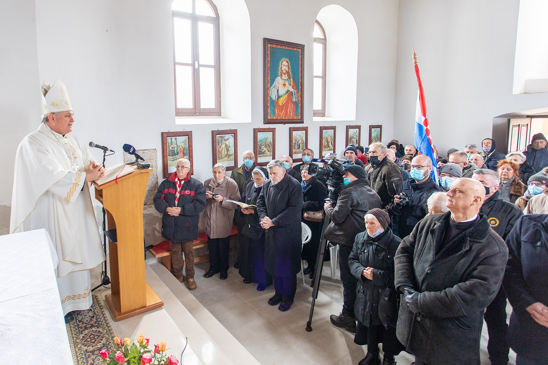 Na početku sve okupljene je pozdravio biskup Košić zahvalivši svima na dolasku, a posebno biskupu Radošu, koji je u zadnjih godinu dana kao predsjednik Hrvatskog Caritasa više puta posjetio Sisačku biskupiju. Zahvalio mu je i na gestama dobrote i brige za stradale u potresu na ovom području koji je kroz povijest proživio brojne velike tragedije. Na kraju biskup Košić je poručio i kako su ova komemoracija i misa tu da bi zahvalili, molili i sjetili se, ne samo branitelja Gvozdanskog, nego svih onih koji su pali za domovinu.