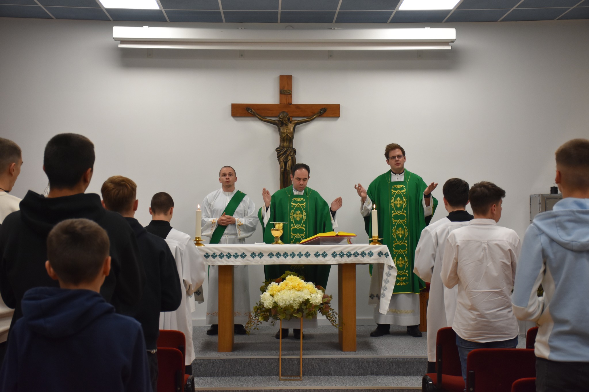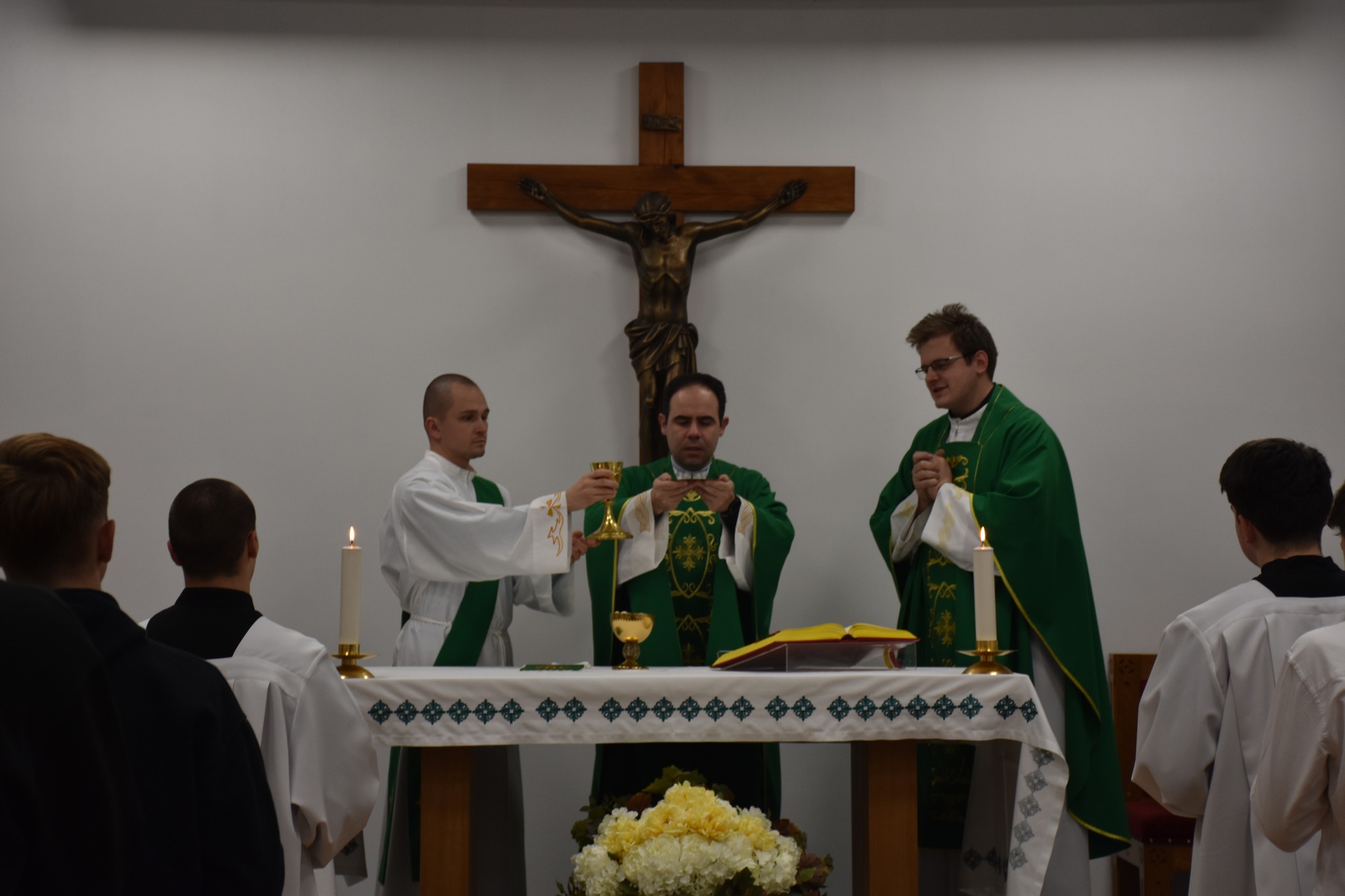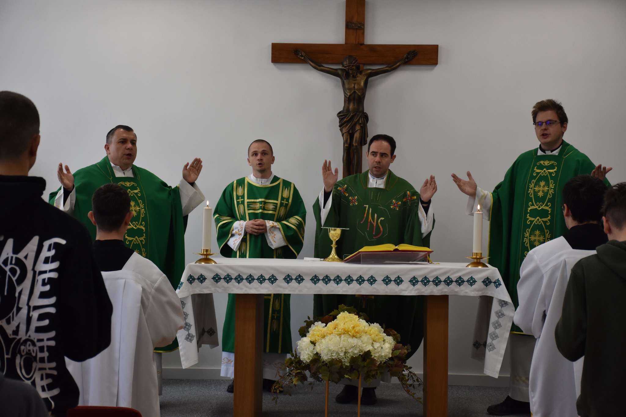 Vrhunac cjelokupne duhovne obnove bila je sveta misa koja je zatim uslijedila, a predslavio ju je voditelj duhovne obnove preč. mr. Janko Lulić u koncelebraciji s rektorom sjemeništa preč. Matijom Pavlakovićem i sjemenišnim duhovnikom vlč. Lukom Premelčem, dok je kod oltara posluživao đakon Ivan Čus, magistar sjemeništaraca. Po završetku svečanog Slavlja rektor Pavlaković je u ime sjemenišne zajednice zahvalio voditelju na svakoj upućenoj riječi, na svakoj molitvi i brižnosti prema sjemeništarcima uručivši mu prigodne poklone šalatskog sjemeništa.