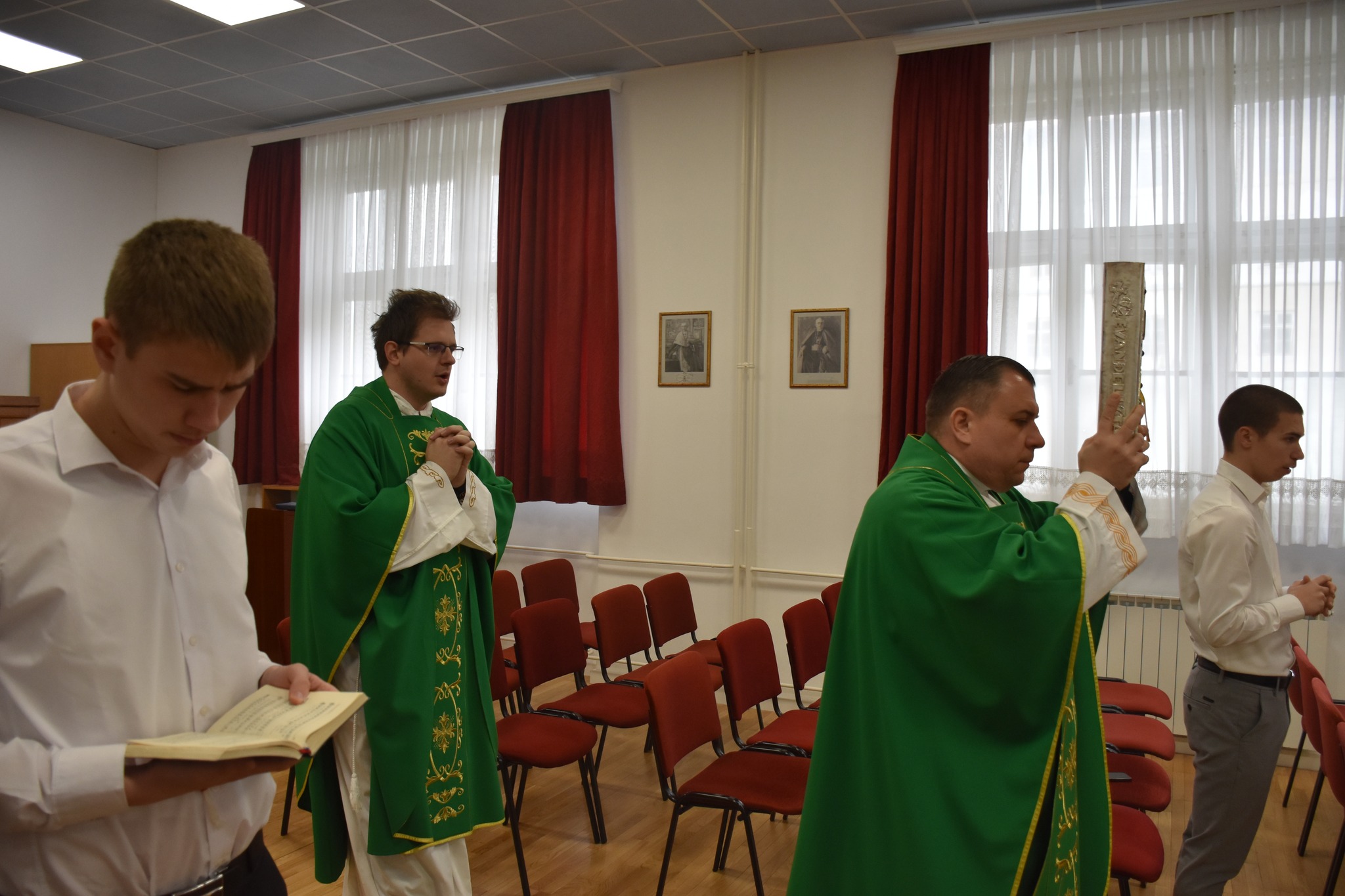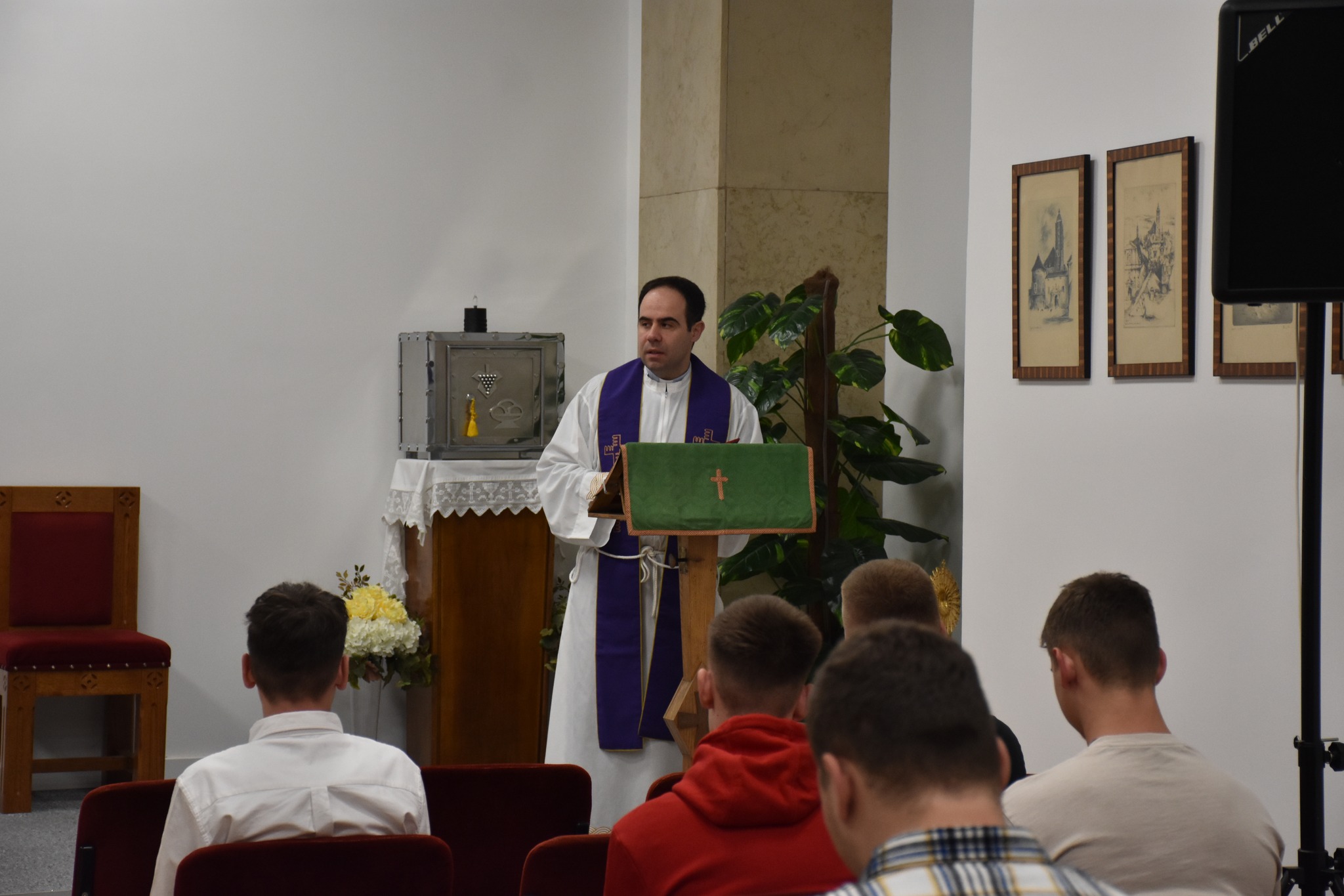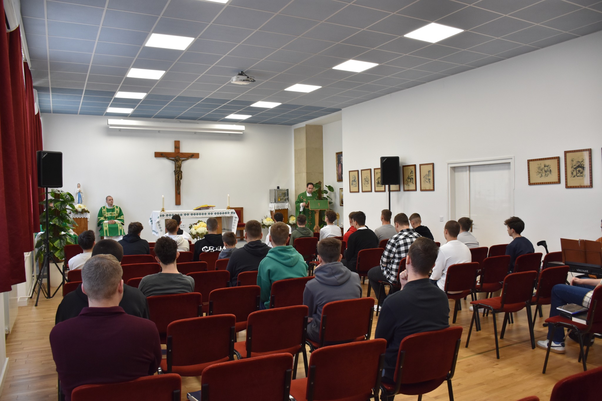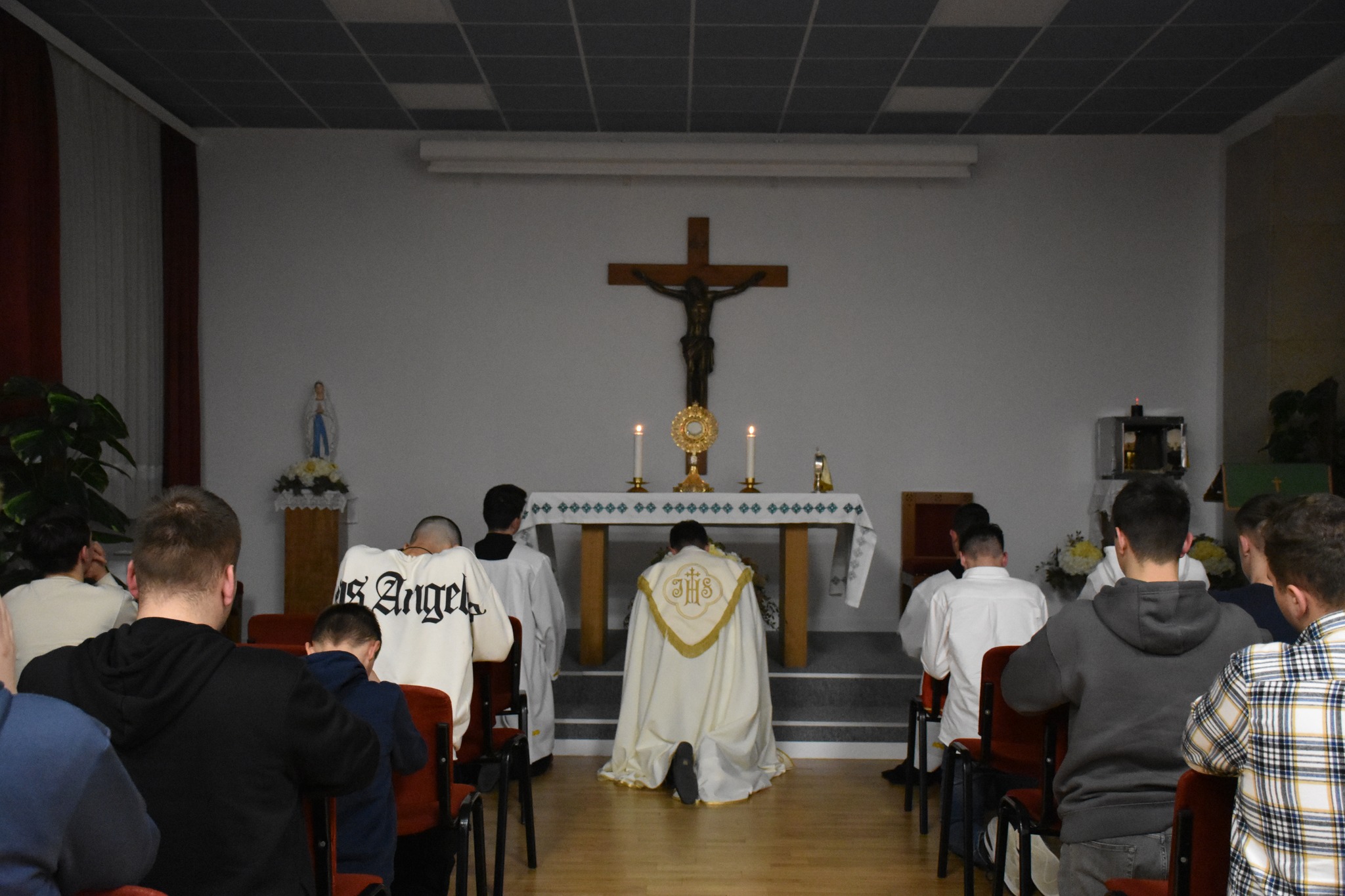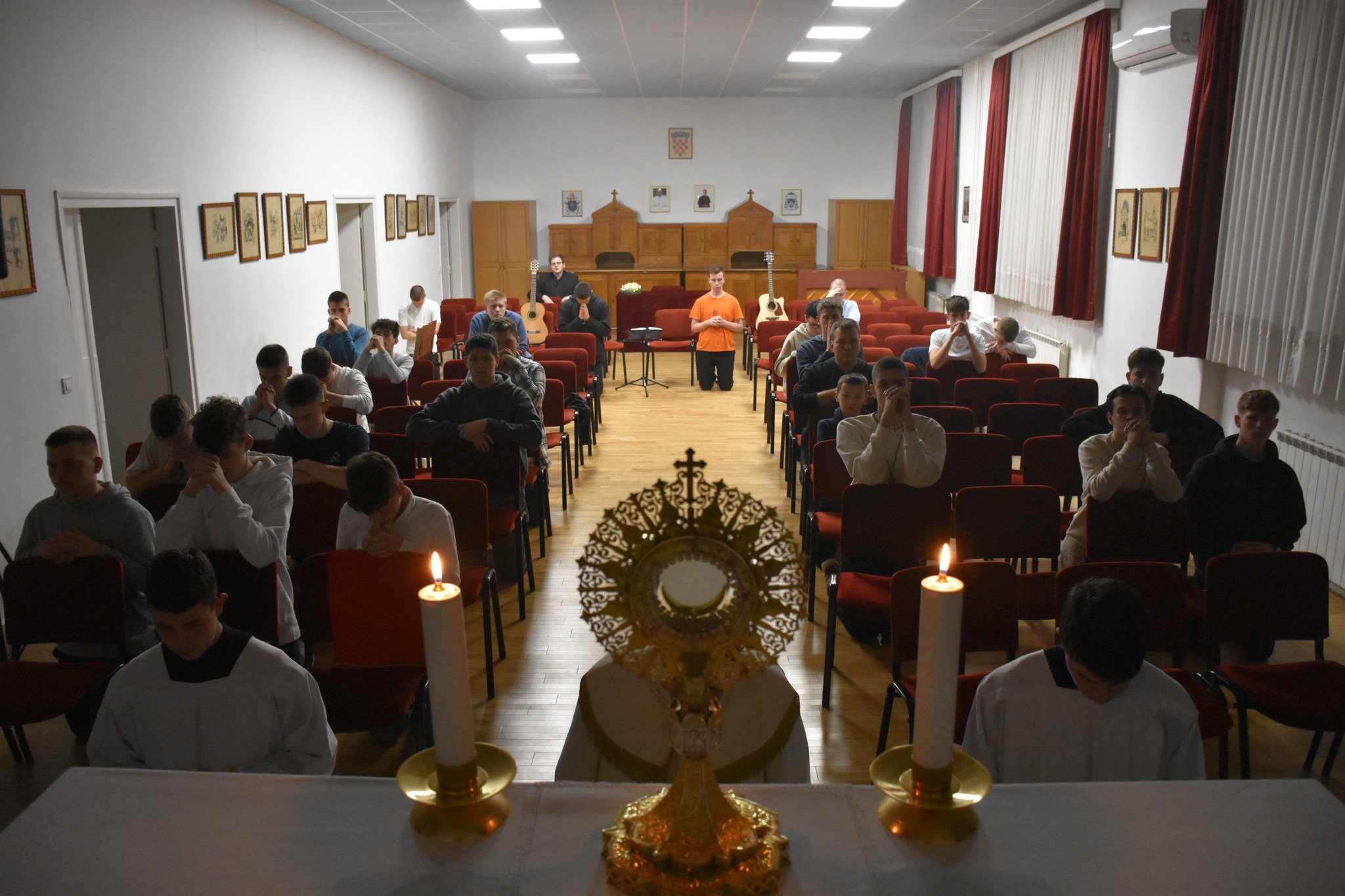 Prvi dan duhovne obnove i „Vikenda u sjemeništu“ završio je zajedničkim euharistijskim klanjanjem pred Presvetim Oltarskim Sakramentom gdje su sudionici molili na razne nakane, osobito jedni za druge i međuljudske odnose.