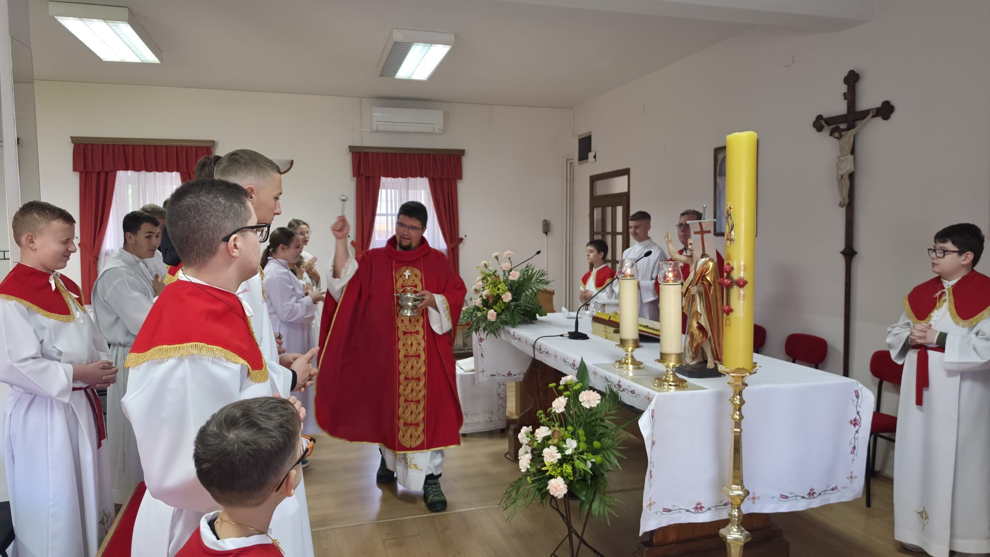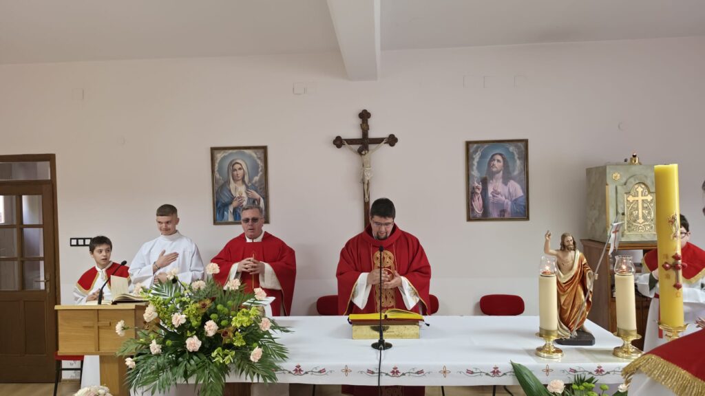 Središnji dio susreta bilo je slavlje svete mise, koje je okupilo sve sudionike u zajedništvu molitve. Euharistijsko slavlje predvodio je povjerenik za ministrante sisačko-katedralnog dekanata vlč. Croat Balija, dok je u koncelebraciji bio fra. Ivan Bradarić. Na samom kraju misnog slavlja djeci su podijeljeni lančići s likom srca ljubavi.