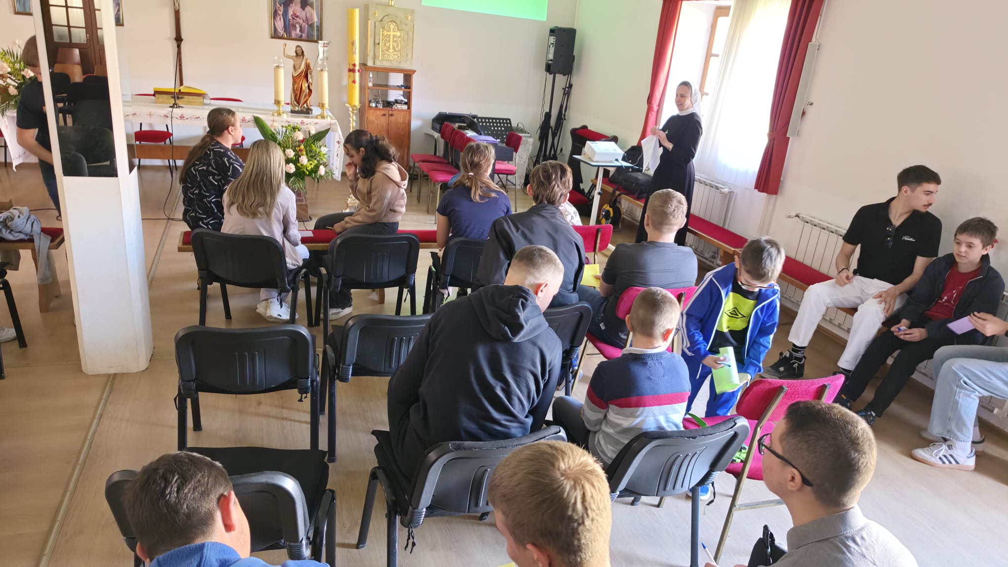Mjesečni susret ministranata Sisačko-katedralnog dekanata održan je u subotu 25.travnja 2026. u župi Uzvišenja Svetoga Križa u Sisku. Susret je započeo zajedničkim programom u kojem su ministranti sudjelovali u igri asocijacija, kroz koju su došli do rješenja – svetog Dominika Savia, zaštitnika ministranata. U nastavku je prikazan i kratki film o životu Dominika Savija, koji je ministrantima približio njegovu svetost i primjer uzornog kršćanskog života.