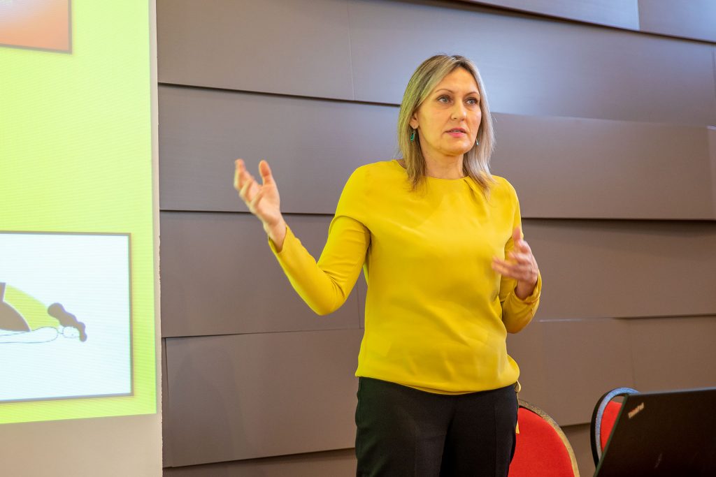 U predavanju je govorila i o uzrocima, simptomima, fazama, obilježjima i posljedicama izgaranja u poslu te o iskustvima sličnima i povezanima s izgaranjem kao što su zamor suosjećanja, emocionalni rad i moralne ozljede. No, najveći naglasak stavljen je na prevenciju izgaranja što podrazumijeva brigu o osjećaju ravnoteže između poslovnog i osobnog života, kao i upravljanju vlastitim prioritetima i vremenom kroz traženje i otkrivanje smisla kako u poslu tako i u životu. Različiti poslovi mogu biti više ili manje zahtjevni ili ugledni, ali izazovnost posla ovisi najviše o tome kako pojedinac na njega gleda. Najzadovoljniji su oni ljudi koji svoj posao doživljavaju kao životni poziv, a stjecanje novca nije smisao rada kao ni stjecanje uspjeha ili statusa. Da bi ljudi bili zadovoljni poslom koji obavljaju, posao treba izgrađivati njihov osobni identitet, ispunjavati ih i davati im osjećaj vrijednosti. Svako zadovoljstvo je prolazno: povišice, promaknuća, priznanja, godišnji odmori i slobodni dani. Oduševljenje time već nakon nekoliko dana splašnjava i nestaje. Pravo zadovoljstvo nalazi se tamo gdje ga se ne traži. Zadovoljstvo koje nije bilo planirano ni očekivano, mijenja i ispunjava život kao dar koji trajno ostaje u srcu, a proizlazi iz smisla koji onda postaje jedino mjerilo u životu.