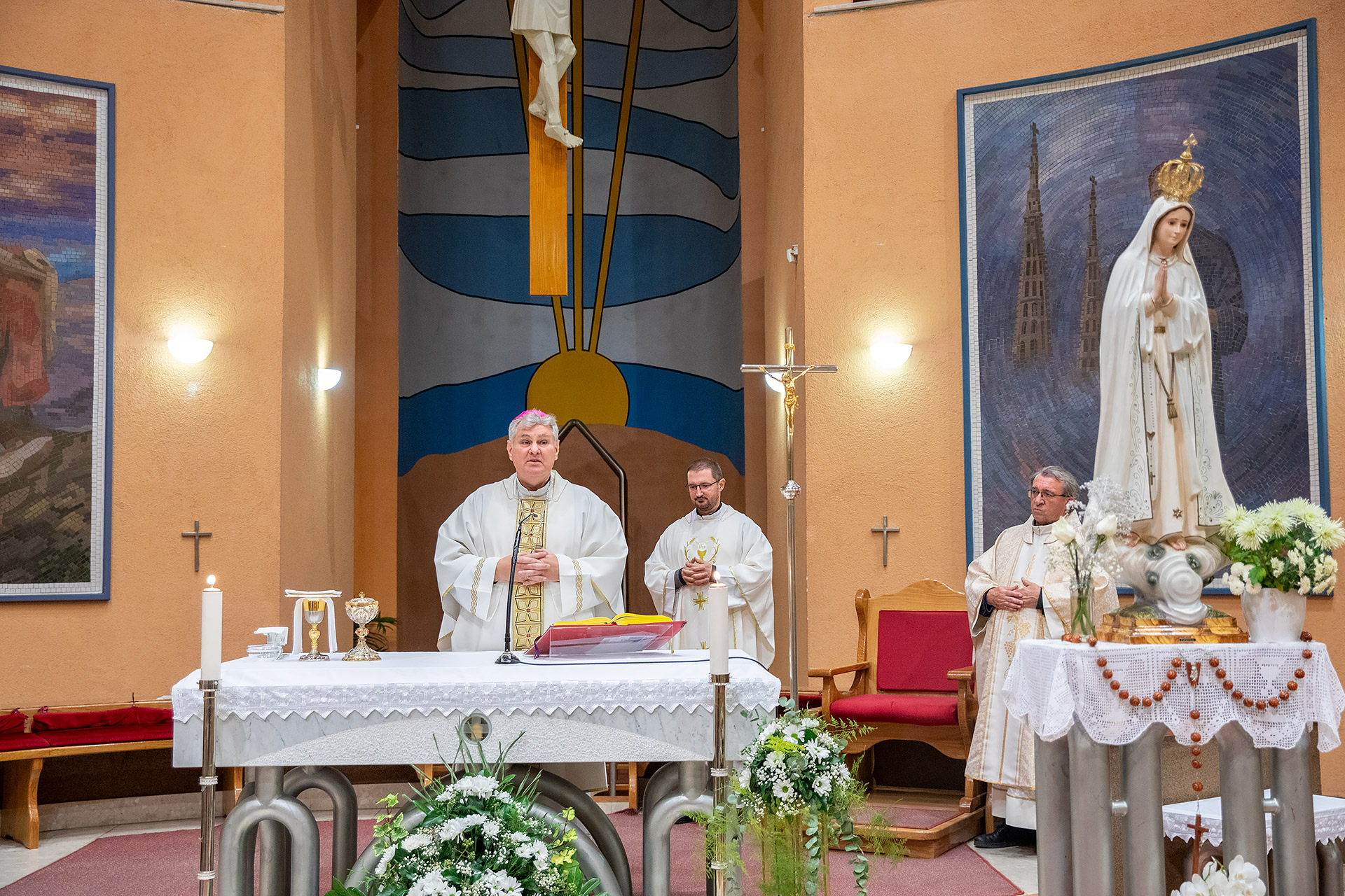 Osvrnuvši se na pročitanu Božju Riječ biskup je ustvrdio kako ona poziva na poniznost. „U prvom čitanju iz Poslanice sv. Pavla ap. Rimljanima on govori o pozivu židovskog naroda, a čijeg je i sam pripadnik kao i farizejske sljedbe i Benjaminova plemena. Pitati se zašto se to dogodilo da Židovi nisu u većini prihvatili Isusa. To ga je mučilo i bilo mu je teško što njegov narod nije ušao u Božju Crkvu. Jučer smo u čitanjima čuli kako je rekao da bi volio biti proklet i odbačen od Krista samo da se njegov narod spasi. Tako je apostol Pavao volio svoj narod da bi sve dao za njega da se spasi. Svi su apostoli bili Židovi i Isus je bio Židov, tako da se ne može reći da se iz tog izabranog naroda nije rodila Crkva. Drugo je koliko je malo samih Židova ušlo u tu Crkvu i zato su se apostoli raspršili po cijelom svijetu. Na kraju ove poslanice on ipak kaže da su neopozivi darovi Božji. Znači ono što je Bog dao to će sigurno uroditi plodom i to će se sigurno nekada pokazati i izaći na vidjelo i u tom njegovom narodu“, rekao je biskup te poručio kako i mi Hrvati trebamo voljeti svoj narod. „Naš bl. Alojzije Stepinac, kojem je posvećena ova crkva, govorio je da katolici ne samo smiju nego i moraju voljeti svoj narod. To ne znači da mrzimo ili nešto loše želimo drugim narodima. Naprotiv, voljeti svoj narod znači da živimo pošteno i čestito te time doprinosimo njegovu boljitku, a samim time onda će biti i bolje onim narodima oko nas“.