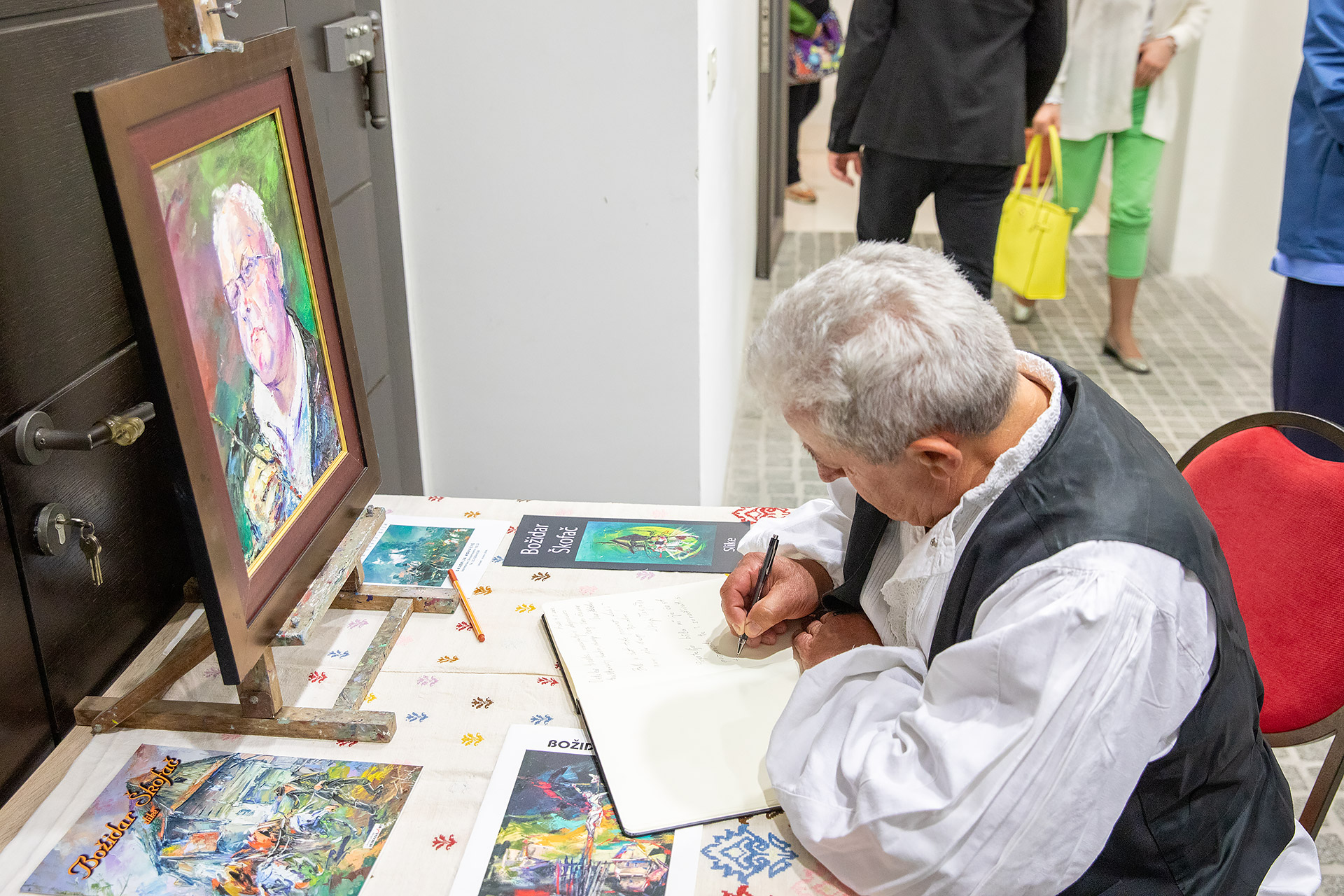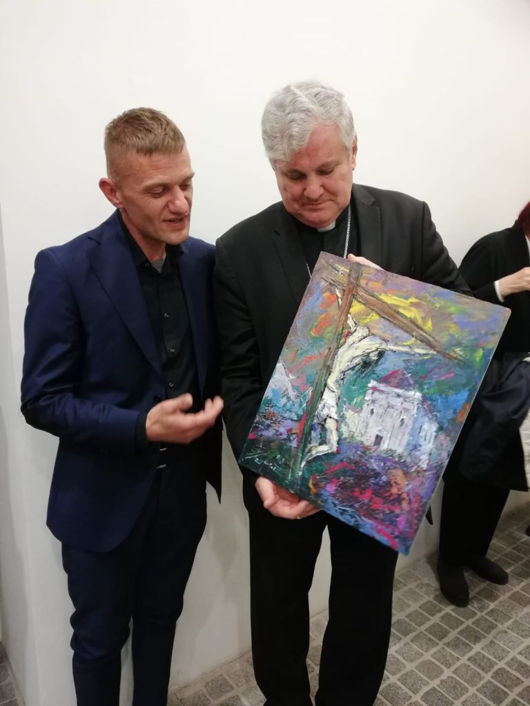 Na kraju prikazan je kratki film od Božidaru autora Dalibora Gotala. Nakon komemoracije Jurica Škofač poklonio je biskupu jednu od posljednjih Božidarovih slika, a koja prikazuje Krista na križu i srušenu sisačku katedralu.