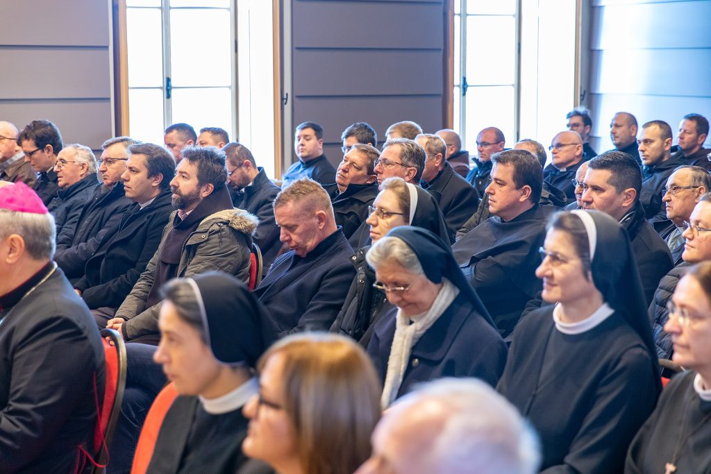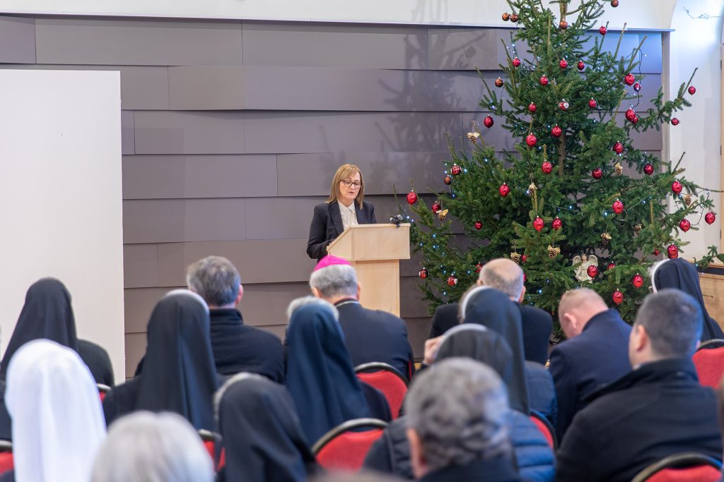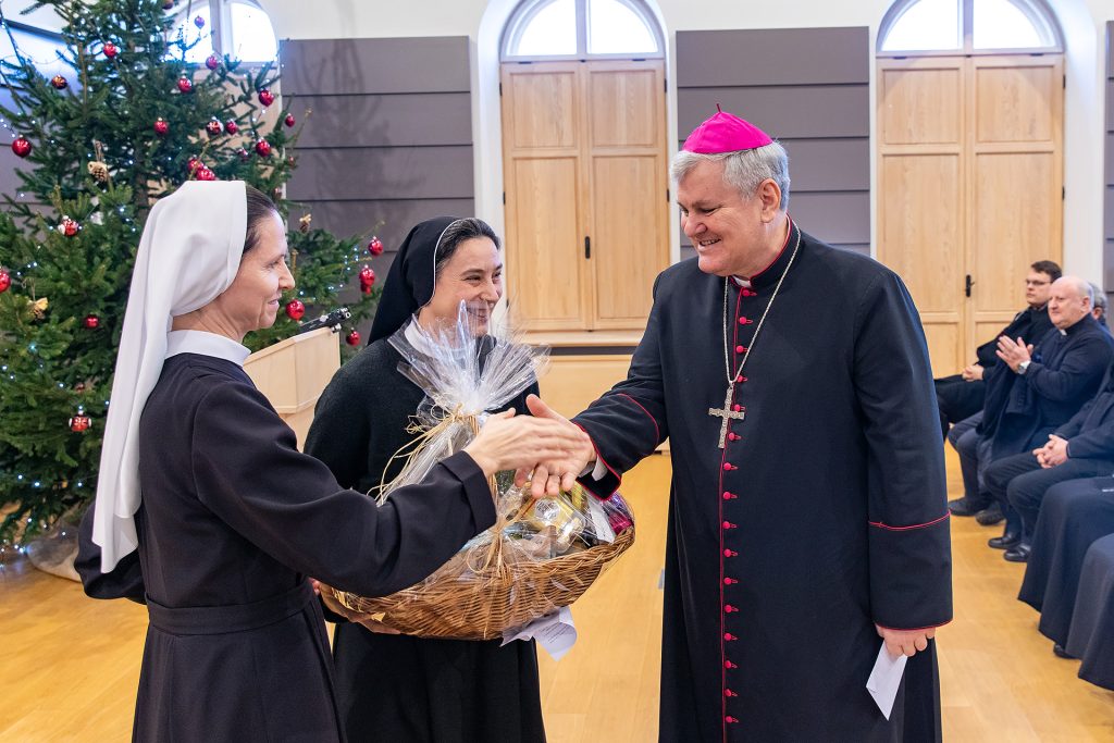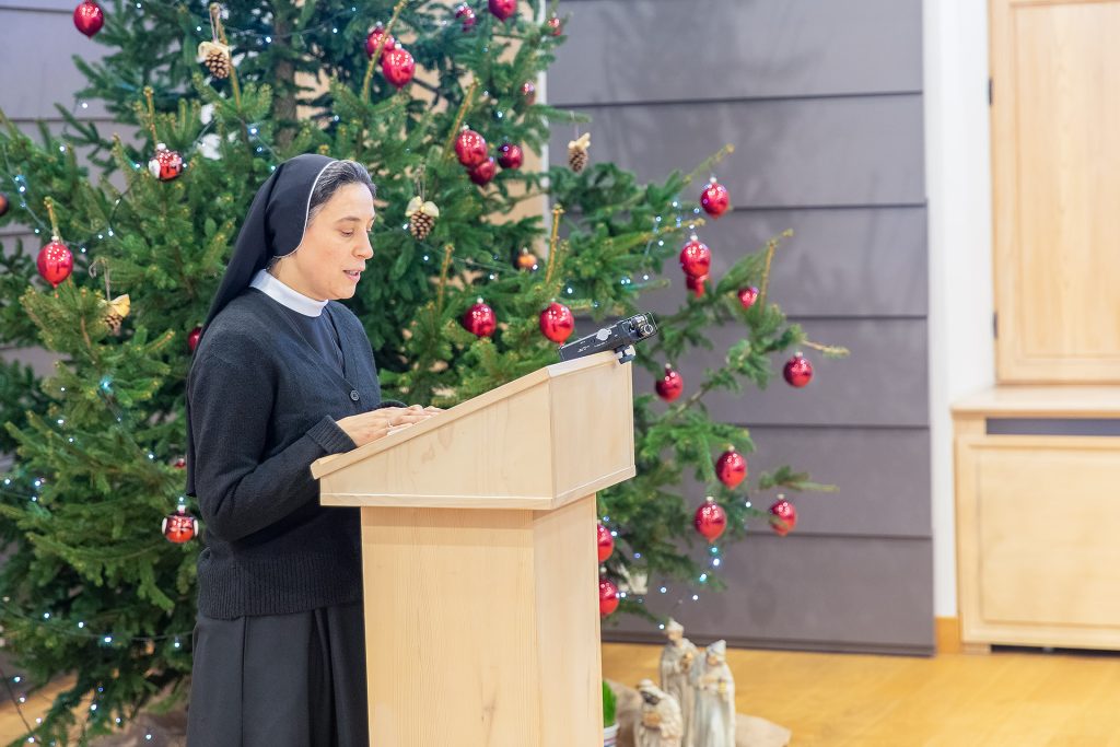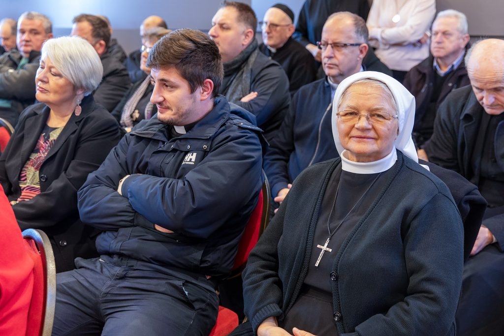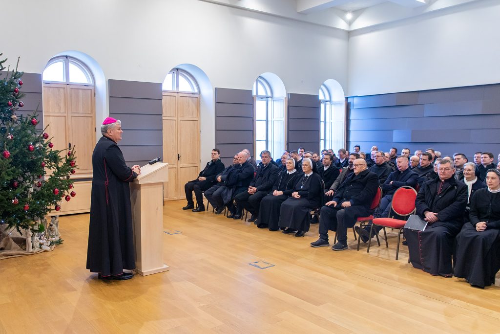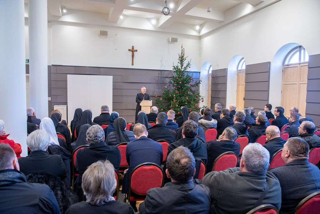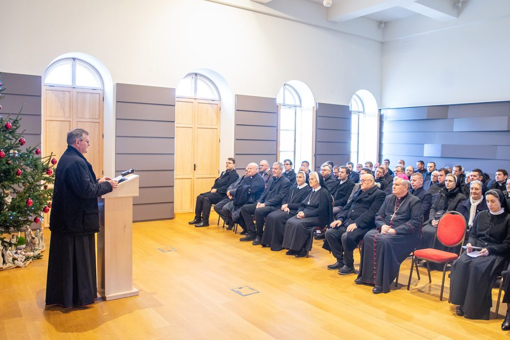 Na početku, u ime svećenika, okupljenima se obratio generalni vikar mons. Ivica Mađer, koji je iznio detaljan presjek protekle godine u biskupiji, ali i uopće u Crkvi. Od brojnih okruglih godišnjica, predavanja, hodočašća, predstavljanja knjiga i izdavačke djelatnosti pa sve do aktualnih događanja. Podsjetio je i na Sinodalni hod sisačke crkve te kako je ova pastoralna godina posvećena velikoj duhovnoj i materijalnoj obnovi. „Božić nam dolazi, i Bog nas poziva s nježnošću, kao i betlehemske pastire, da mu priđemo. Da se obogatimo njegovom ljubavlju i milosrđem i da postanemo milosrdni jedni prema drugima, a da bi se tako na zemlji ispunila Božja božićna želja: slava Bogu na visini, a na zemlji mir ljudima dobre volje. Poštovani biskupe, braćo i sestre, želim da ovog Božića doista prepoznamo Božji poziv ljubavi i milosrđa. Da ga prihvatimo bez straha i s povjerenjem kao što su to učinili Marija, Josip i pastiri“, zaželio je generalni vikar, nakon čega se okupljenima u ime redovničkih zajednica obratila s. Jelena Krilić te u ime djelatnika biskupije ravnateljica Caritasa Kristina Radić.