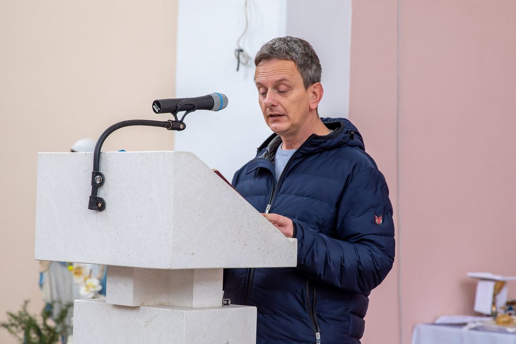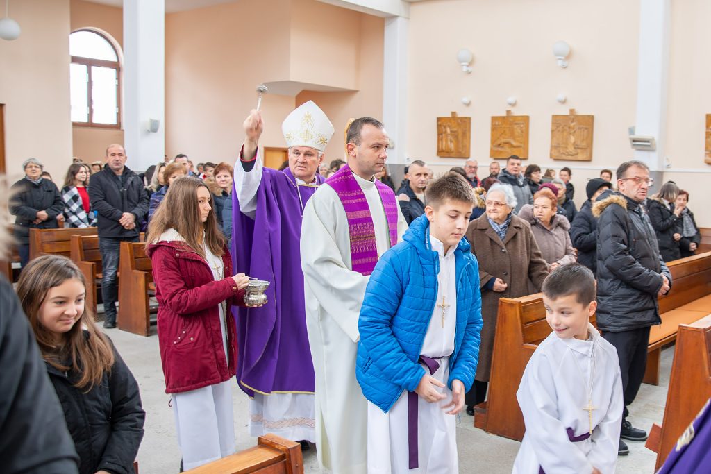Na početku u ime župne zajednice biskupa je pozdravio vjeroučitelj Ivica Josipović istaknuvši kako dolazak i prisustvo biskupa vjernicima ove župe predstavlja iznimnu radost i blagoslov. Zahvalio je biskupu na svim održanim susretima te upućenim riječima i iskazanom razumijevanju za potrebe ove župe.