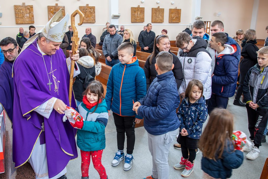 Nakon popričesne molitve biskupu je na dolasku zahvalio i župnik fra Ivo, a nakon mise biskup je okupljenoj djeci podijelio pakete slatkiša povodom blagdana sv. Nikole.