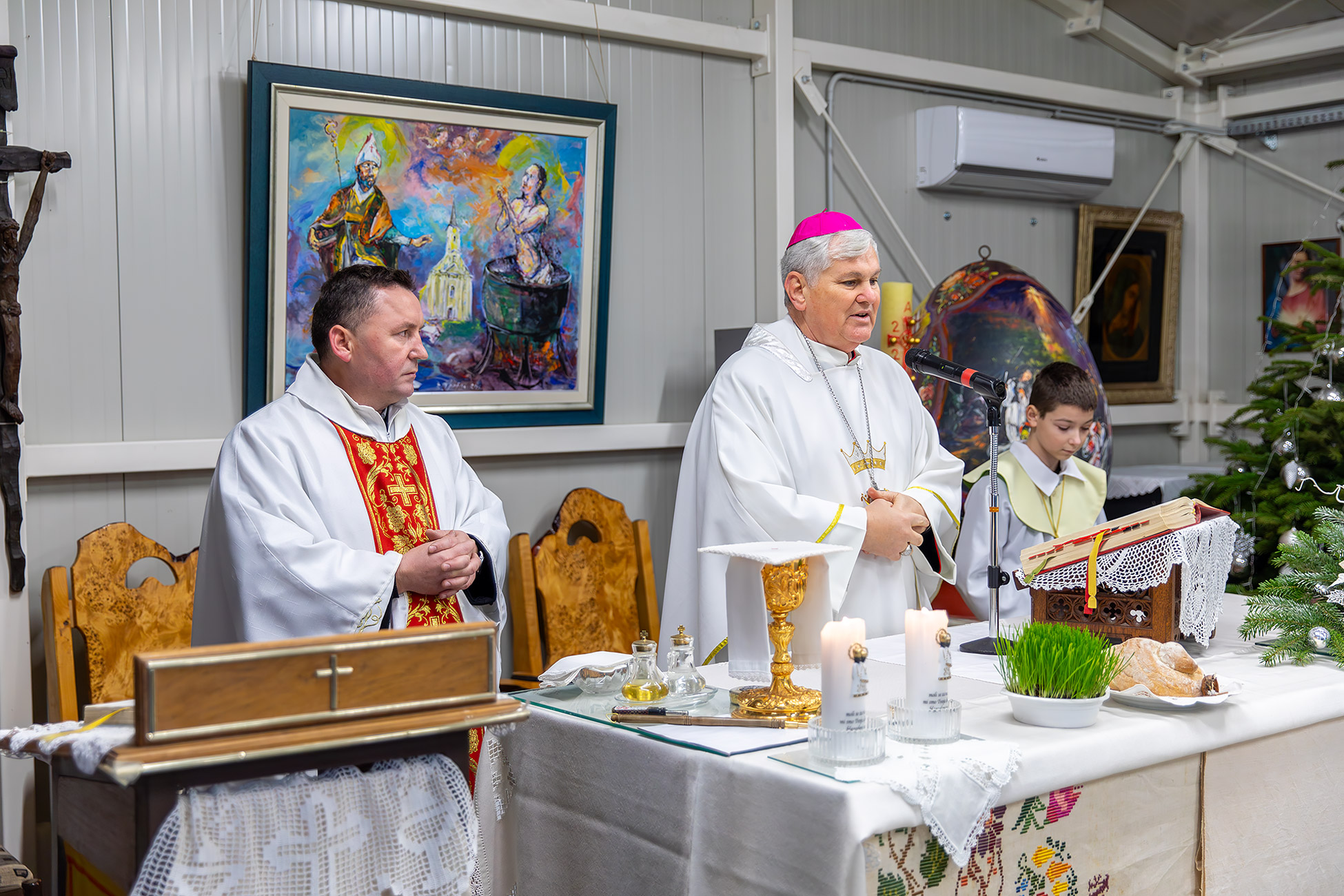Govoreći o obnovi, biskup se osvrnuo i na stradanje sakralnih objekata, istaknuvši da je u potresu oštećeno 28 župnih crkava. Zahvalio je ministru Branku Bačiću i ministrici Nini Obuljen Koržinek te predstavnicima Ministarstva kulture, naglasivši da je prepoznata potreba da se, uz obnovu javnih zgrada, škola, bolnica, kuća i novih stambenih zgrada, sustavno obnovi i sakralna baština.