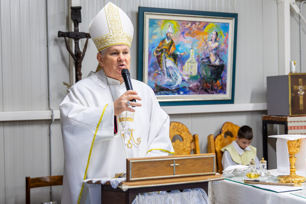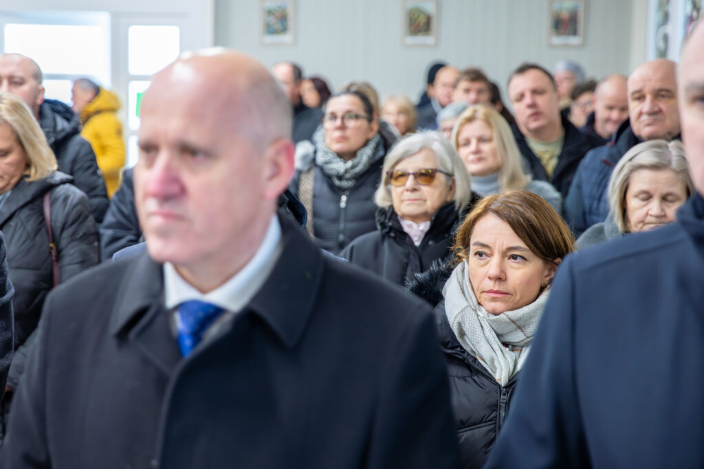 U homiliji se biskup prisjetio tragičnog dana kada se i sam našao u epicentru potresa u Petrinji, a nekoliko trenutaka prije bio je upravo u crkvi u Žažini koja se kasnije srušila. Posebno se osvrnuo na pogibiju Stanka Zeca, orguljaša ove župe, prisjetivši se i njegova sprovoda. U tom je kontekstu prenio i misao pokojnikova župnika Ilije, koja je, kako je rekao, mnogima ostala u pamćenju: „Možda će neki reći da se u krivo vrijeme našao na krivom mjestu, no župnik je posvjedočio suprotno – da je Stanko bio uvijek čovjek u pravom trenutku na pravom mjestu, vjernik koji je u času kušnje dao svoj život.“