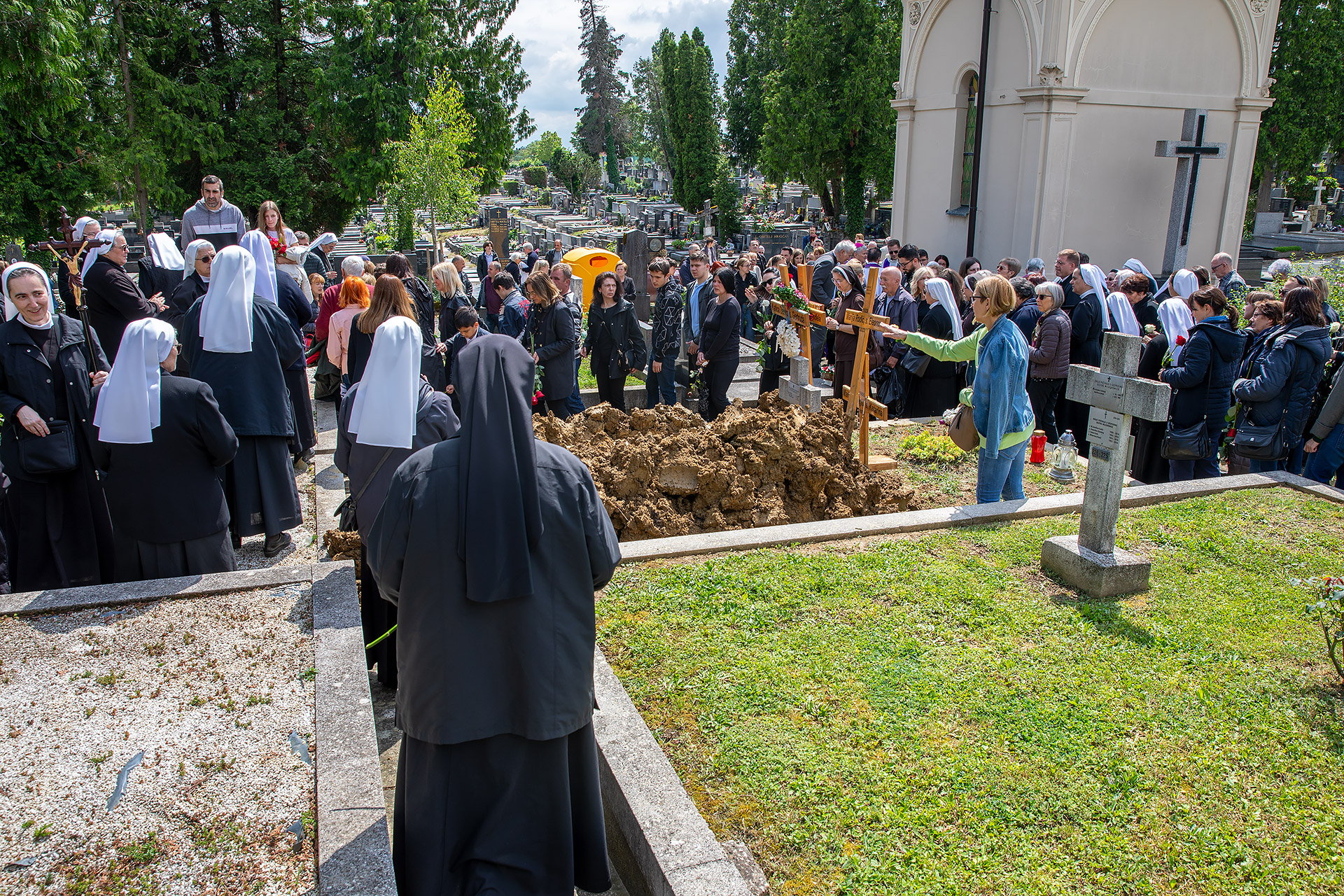 Sisački biskup Vlado Košić predvodio je u utorak, 14. svibnja na zagrebačkom groblju Mirogoj sprovodne obrede za s. Krešimiru (Vesnu) Katarić. Uz sestre iz zajednice predvođene provincijalkom s. Barbarom Vručinom, obitelj pokojnice i više svećenika od pokojnice su se oprostili i brojni vjernici iz Zagreba i Siska čije je živote kroz svoj rad dotaknula.