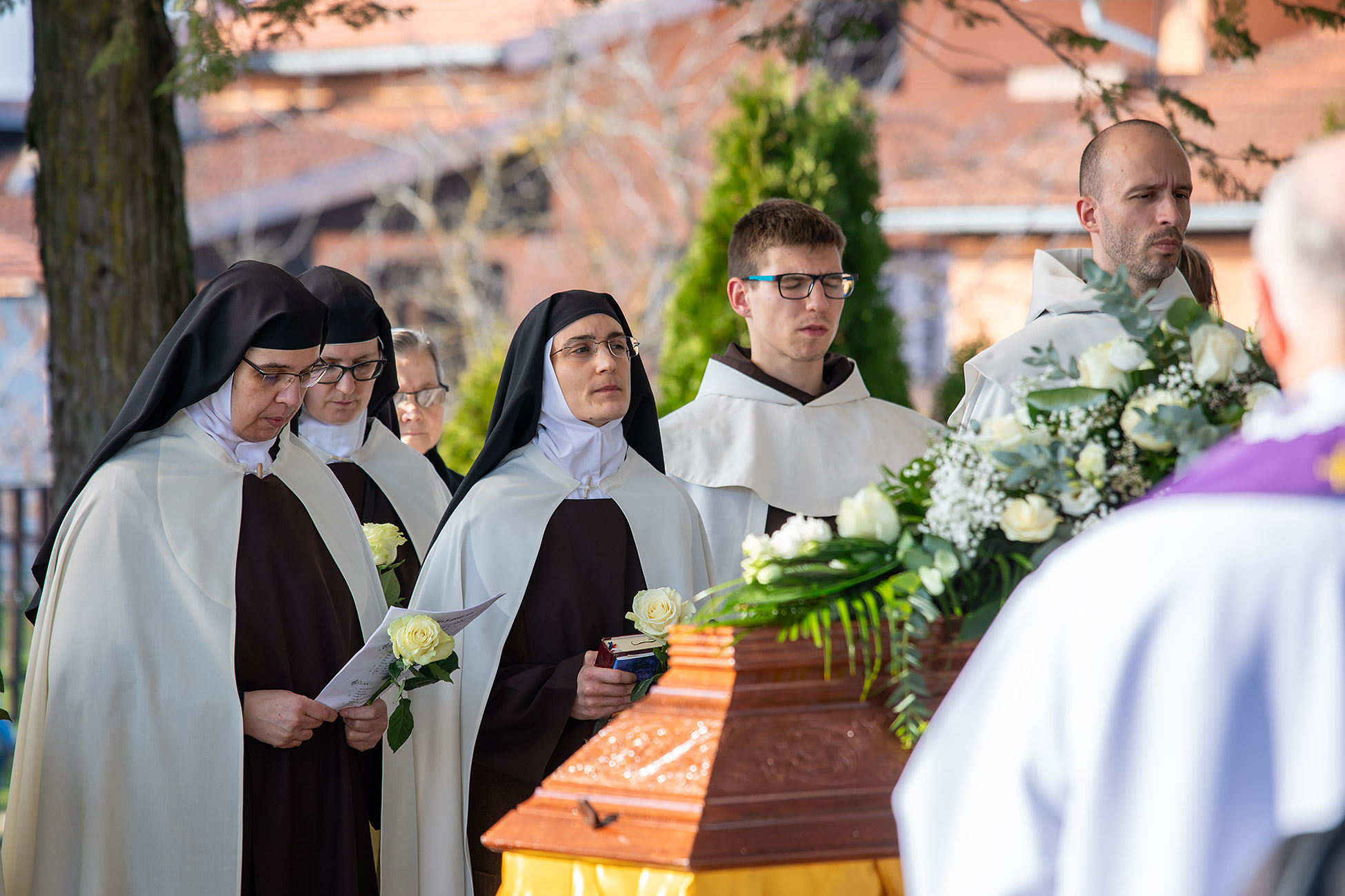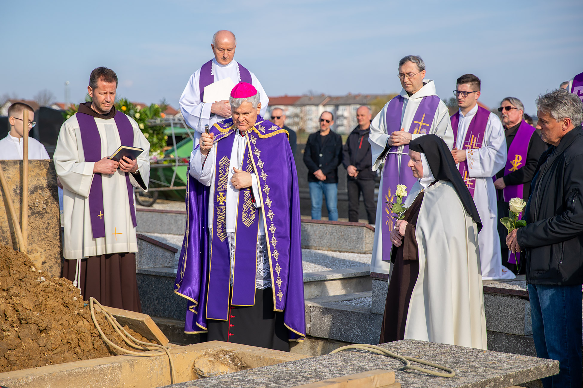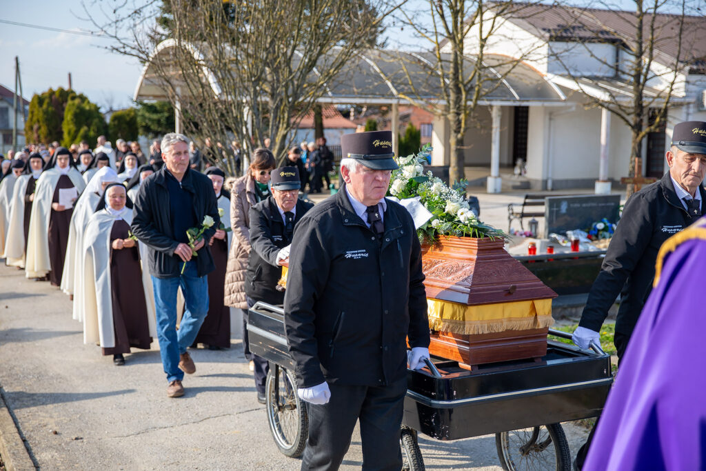 Na groblju se od pokojnice oprostio i župnik fra Robert Ćibarić, pročitavši nekrolog koji su napisale sestre karmelićanke Karmela sv. Male Terezije, predvođene prioricom s. Danijelom. U njemu su posebno naglašene vrline pokojnice: čovječnost, poštenje, odgovornost i vjernost, kao i smisao za žrtvu, nesebično služenje i zahvalnost.