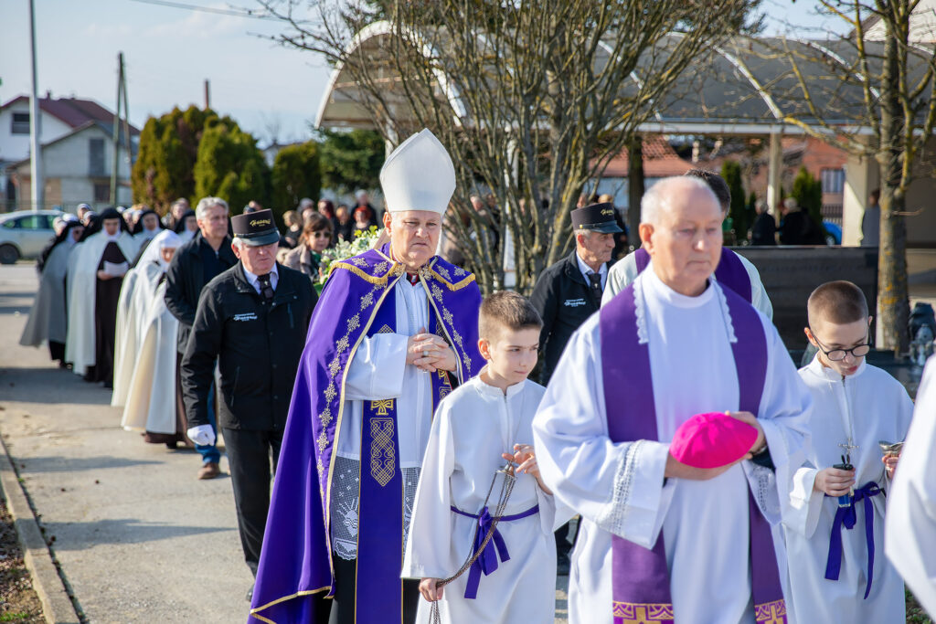 Osvrnuvši se na pročitano evanđelje, ulomak o Lazarovu uskrsnuću, istaknuo je Isusovu blizinu i suosjećanje jer „Isus je zaplakao…“, kao znak prijateljstva prema čovjeku i poruku da smrt nema posljednju riječ. Podsjetio je da su neki, unatoč tom znaku, ostali zatvoreni za vjeru, jer postoje i oni koji ne mogu podnijeti svjedočanstvo života koji upućuje na Boga. „Mi živimo u svijetu koji je s jedne strane Božji, a s druge strane bori se protiv Boga. Zato smo pozvani da u takvom svijetu budemo znak Božji, znak Kristov“, poručio je biskup.