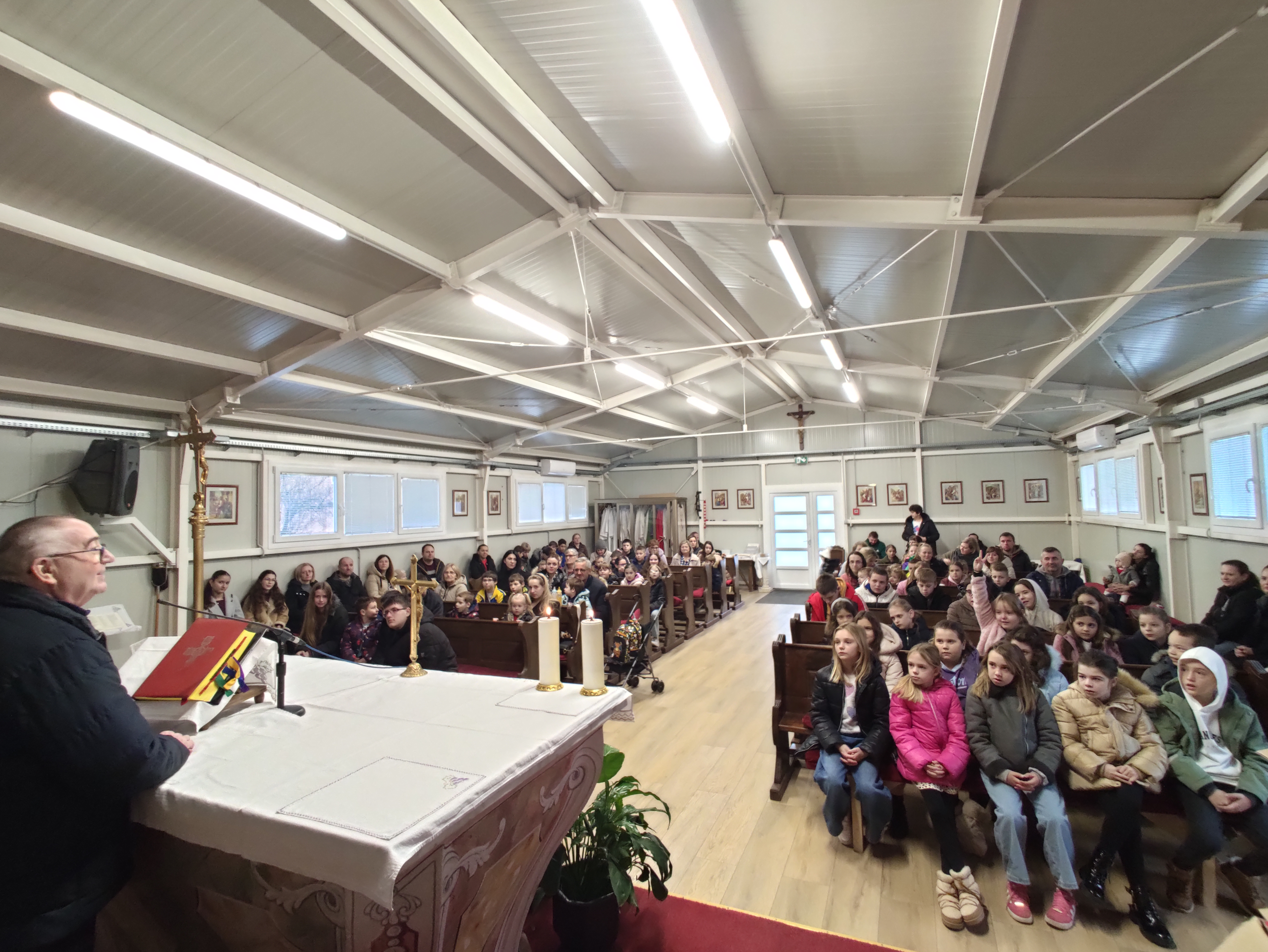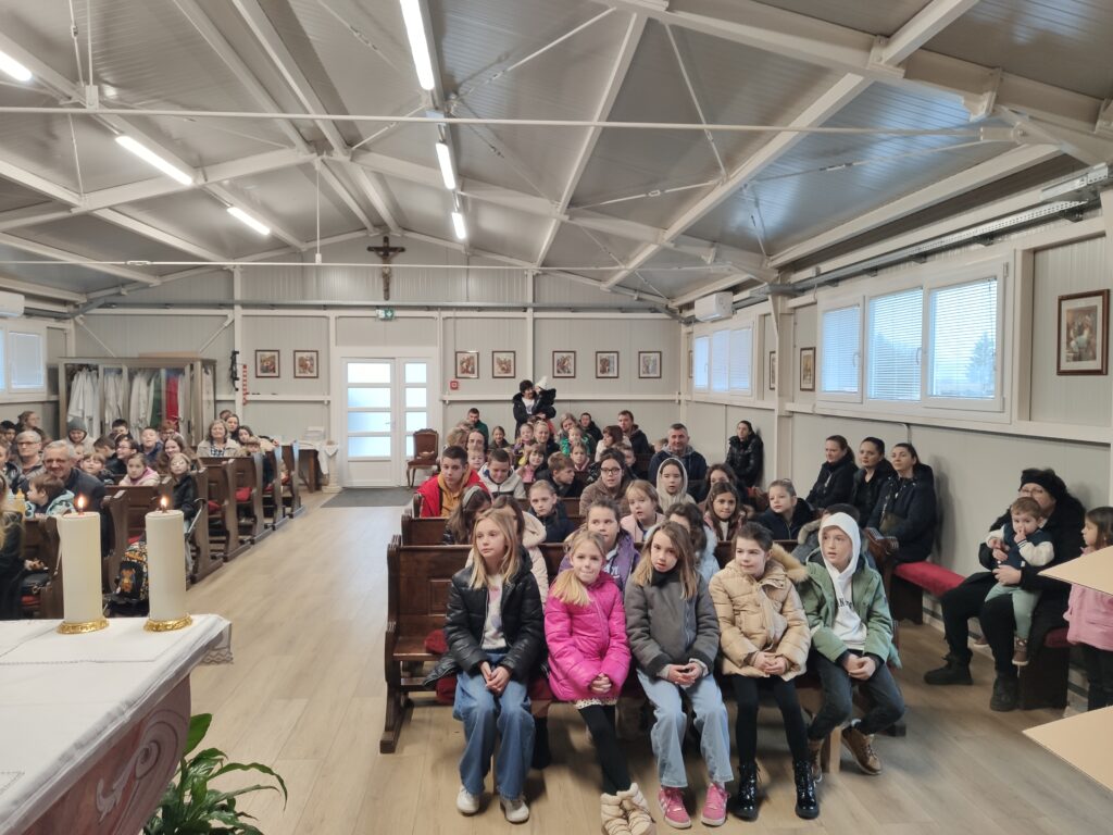 Program je započeo župnikovim pozdravom i zajedničkom kratkom molitvom, nakon čega je uslijedila sama predstava. Djeca su s velikim zanimanjem pratila događanja na pozornici, a posebnu radost izazvao je dolazak sv. Nikole koji je, kao i svake godine, donio darove. U dvorani se tražilo mjesto više — okupilo se više od 70 djece, uz pratnju roditelja, baka i djedova.