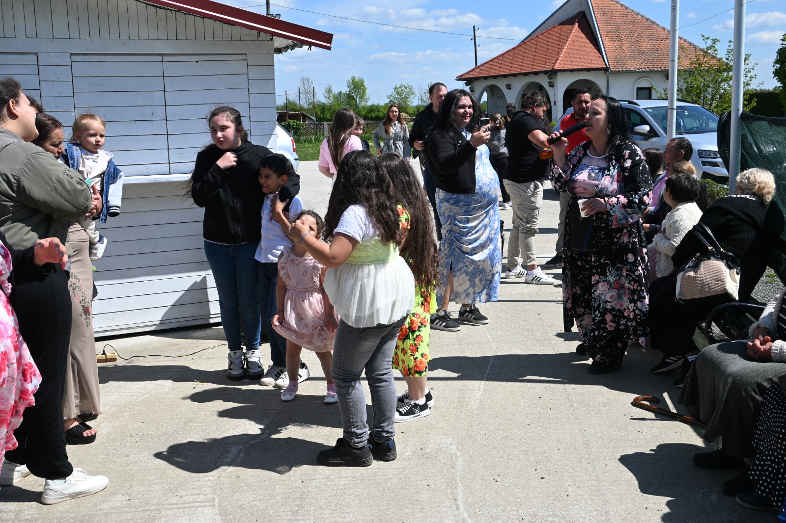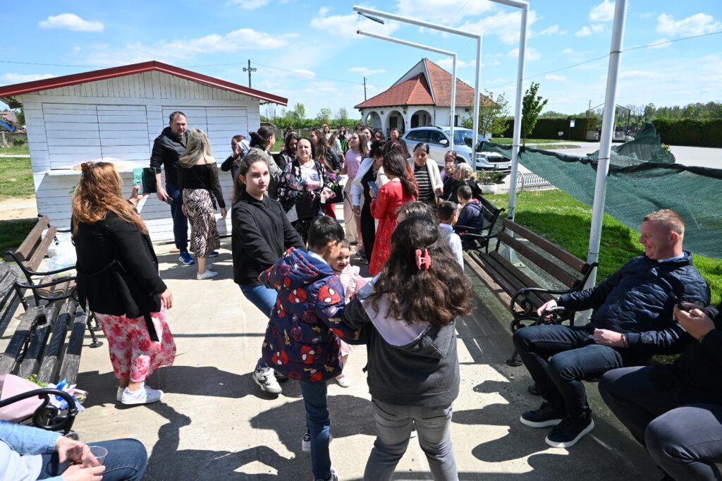 Vlč. Mirčić čestitao je okupljenim Romima njihov dan i blagoslovio cvijeće koje su imali sa sobom.