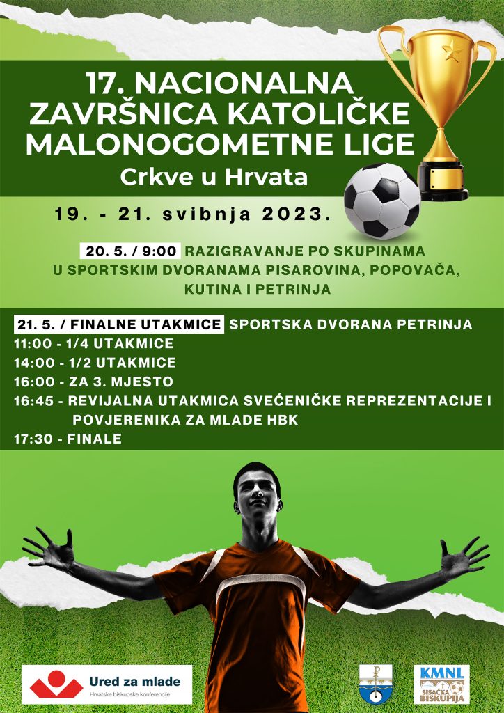 Ured za pastoral mladih Sisačke biskupije i vodstvo KMNL-a Sisačke biskupije ovogodišnji su domaćin 17. završnice Katoličke malonogometne lige Crkve u Hrvata koji će se održati od 19. do 21. svibnja 2023. godine u Sisku, Pisarovini, Popovači, Petrinji i Kutini.