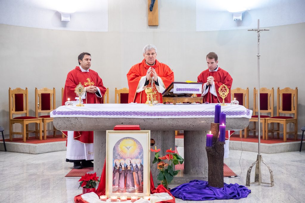 Uz brojne vjernike misnom slavlju prisustvovale su i sestre iz sisačke zajednice Kćeri Božje ljubavi.U homiliji, govoreći o blaženim Drinskim mučenicama, biskup je podsjetio kako su one bile sestre Družbe Kćeri Božje ljubavi i kako su na današnji dan, 15. prosinca 1941., ubijene u Goraždu i bačene u rijeku Drinu. „Dom na Palama su im spalili, a njih tjerali da preko Romanije po snijegu pješice idu do Goražda. Kako svjedoči don Anto Baković, te časne sestre su u noći s 14. na 15. prosinca bile mučene, prijetila im je smrt i obeščašćenje, te su zbog toga, hrabro, predvođene svojom predstojnicom sestrom Julom skočile kroz prozor s riječima: Isuse, smiluj nam se. Tu su ih na tlu tako polomljene četnici izboli noževima te pustili da umru. Tako je mali dječak Ante Baković svjedočio smrti tih časnih sestara te je bio onaj koji se molio za njih kada su ih bacili u Drinu. One su pak radije izabrale smrt i mučeništvo nego se pokorile zločincima, a zbog svega što su prošle te su redovnice primjer hrabrosti, ustrajnosti i predanja, kao i svjedočanstva za Krista. Sačuvale su svoju čast te ljudsko, kršćansko i redovničko dostojanstvo“, rekao je biskup dodavši kako je taj njihov čin prava pobjeda nad zlim.