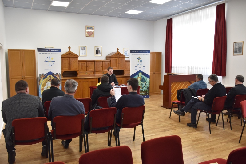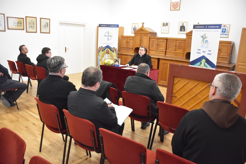 Okupljenim župnicima potom se obratio i gost susreta karmelićanin o. mr. Krešimir Josip Bahmec OCD, župni vikar u župi Uznesenja BDM i svetištu Majke Božje Remetske, koji je održao poticajni korizmeni nagovor uz molitvu za darove mudrosti i jakosti Duha Svetoga u vremenu koje nam Gospodin daje. Rektor Pavlaković u svojstvu razrednog odgojitelja potom je izvijestio župnike o trenutnim ocjenama sjemeništaraca te njihovom vladanju, dok je duhovnik Sjemeništa vlč. Luka Premelč upoznao okupljene župnike sjemeništaraca sa aktualnim duhovnim programom života u Sjemeništu.