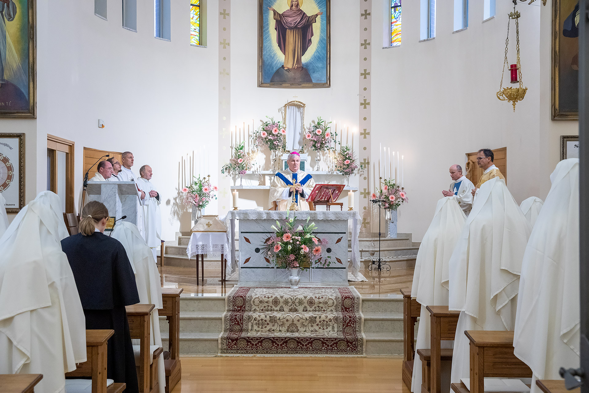 Obrativši se s. Kristini biskup je rekao kako je ona pošla ostvariti u svom životu svoj poziv koji joj je uputio Gospodin. „Ti si taj poziv čula i odazvala se. Što znači taj Tvoj odaziv? Tvoji najbliži u obitelji osjećaju da Te na neki načini gube, Ti si ih napustila. Pa ipak Ti ćeš im od sada biti još bliža negoli prije jer ćeš biti u Gospodinu povezana sa svima koji Te vole i koje Ti voliš. Bog nas sve najviše ujedinjuje i daje nam pravo mjesto među ljudima. To je ono nevidljivo a toliko bitno za svakoga čovjeka, to je duhovna dimenzija odnosa koji je veći i dublji od bilo kojeg zemaljskog, vidljivog ili tjelesnog. No, da bi se to razumjelo potrebna je vjera. Bez vjere se doista ne može tako ni izabrati, ni živjeti. Ne može se razumjeti što je razlog takvom životu ako se ne uđe u otajstvo vjere i jedinstva s Bogom. Ecce ancilla Domini, fiat mihi secundum verbum tuum – evo službenice Gospodnje, neka mi bude po tvojoj riječi, reci i Ti, sestro, danas Gospodinu. Recimo to svi ovdje okupljeni. Ne govori jednako svima Gospodin kako mu trebamo služiti: jedni su pozvani u brak i obitelj, jedni u svećeničko ili redovničko zvanje, jedni živjeti u svijetu, drugi u skrovitosti izvan svijeta, ali svi trebamo vršiti volju Božju. Ti, sestro Kristina, ušla si u ovaj samostan da ovdje služiš Gospodinu, da tu budeš službenica Gospodnja. Slijediti riječ Božju u svom životu nije uvijek lako jer ju ne prepoznajemo uvijek jasno i razgovjetno. Ipak, to je najvažnije i zato ju trebamo osluškivati i tražiti. Kada nam je jasno u srcu, tada ju trebamo slijediti i ne okretati se više natrag. Svaki koji stavi ruke na plug i okreće se natrag, nije prikladan za kraljevstvo nebesko (Lk 9,62), rekao je Gospodin Isus. I Ti si, sestro, zaorala sada novu brazdu. Neka urodi velikim urodom, mnogim plodovima, za Tebe, za ovu zajednicu Tvojih susestara, za Crkvu Božju, za naš narod i za svijet“, zaključio je biskup.