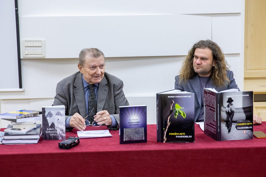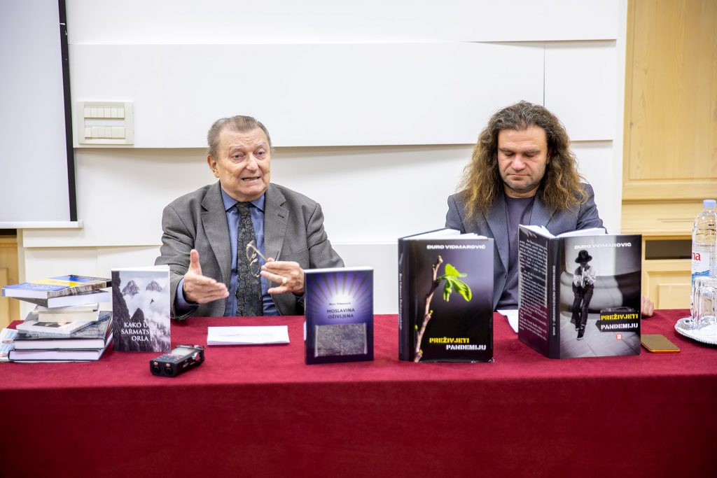 O knjigama nastalima posljednjih godina s posebnim osvrtom na Vidmarovićevu povezanost s Moslavinom govorilo je šest predstavljača. Siniša Matasović govorio je o dvotomnoj knjizi „Preživjeti pandemiju…“, dr. sc. Dražen Kovačević i Katarina Brkić o „Moslavini oživljenoj“, Božica Brkan o „Moslavini kao nadahnuću u djelima Đure Vidmarovića i Katarine Brkić“, Mate Kovačević o dvije knjige polemika „Kako ubiti sarmatskog orla“, a Stjepan Šešelj o Vidmarovićevim zaslugama za hrvatsku književnost kao urednika i voditelja emisije Laudato TV „Susret u Riječi“ koja je prije nekoliko dana dobila 220. epizodu u kojoj je gostovao biskup Košić.