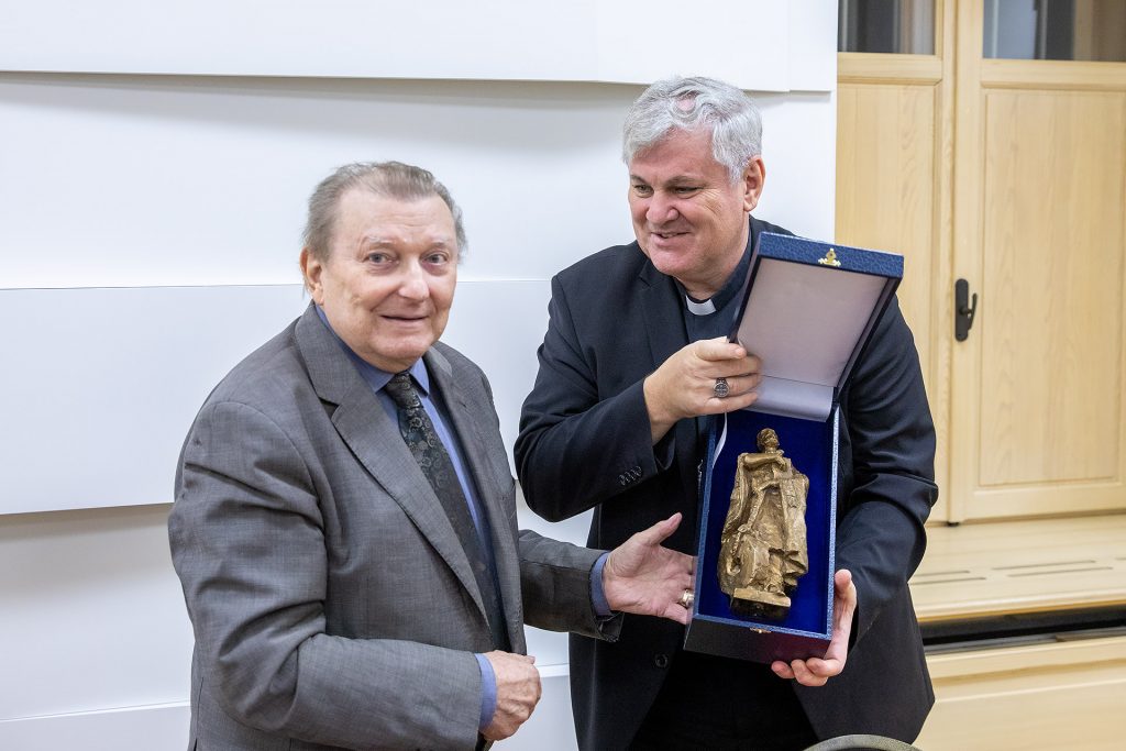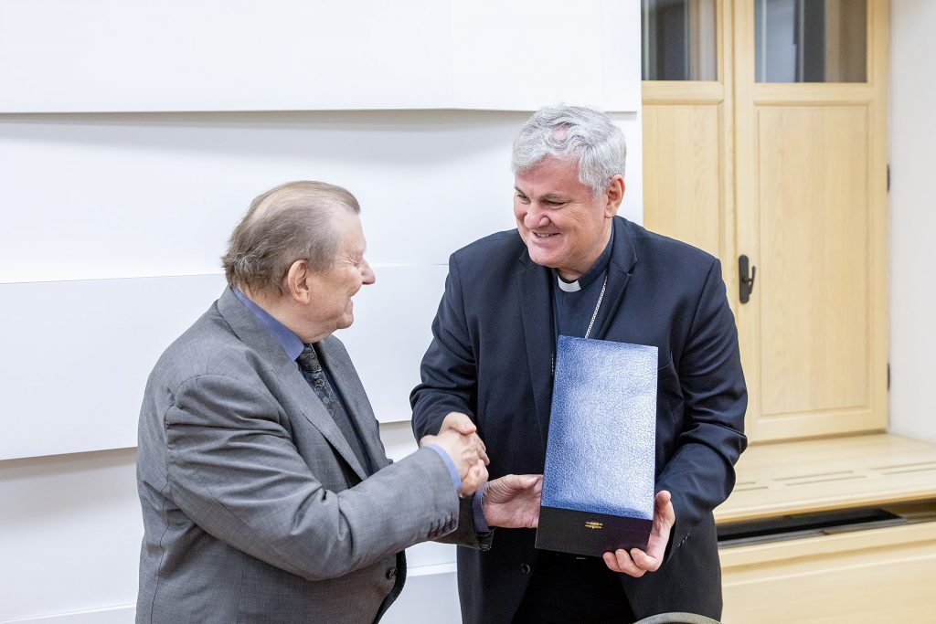 Na kraju, biskup Košić je zahvalio Vidmaroviću za sve što je učinio i čini za hrvatsku kulturu te što proslavlja Moslavinu i Sisačku biskupiju. Poželjevši mu još mnogo godina dobrog i plodonosnog rada, biskup je Vidmaroviću poklonio kip sv. Kvirina.
