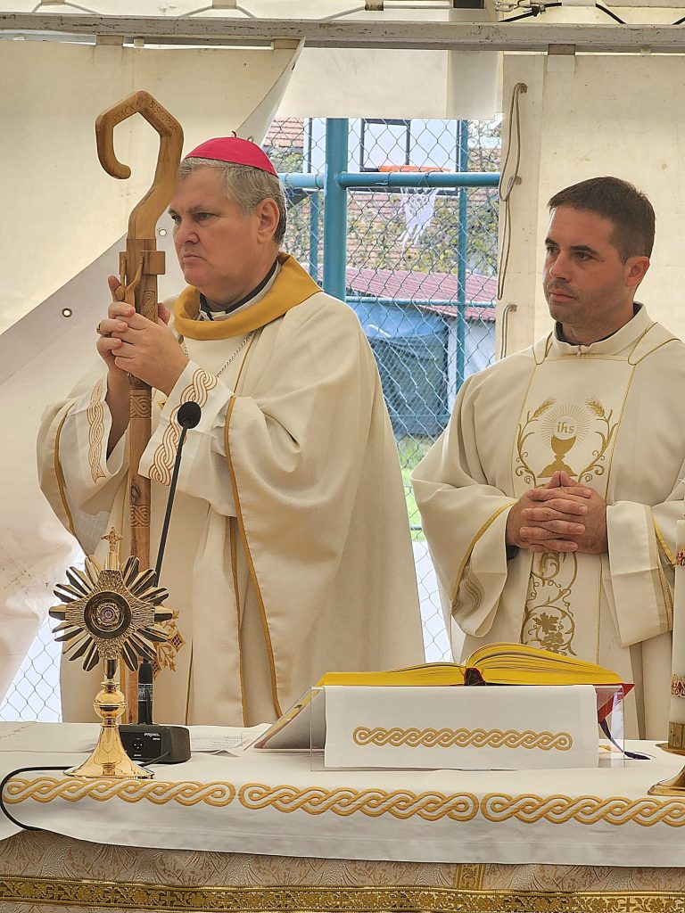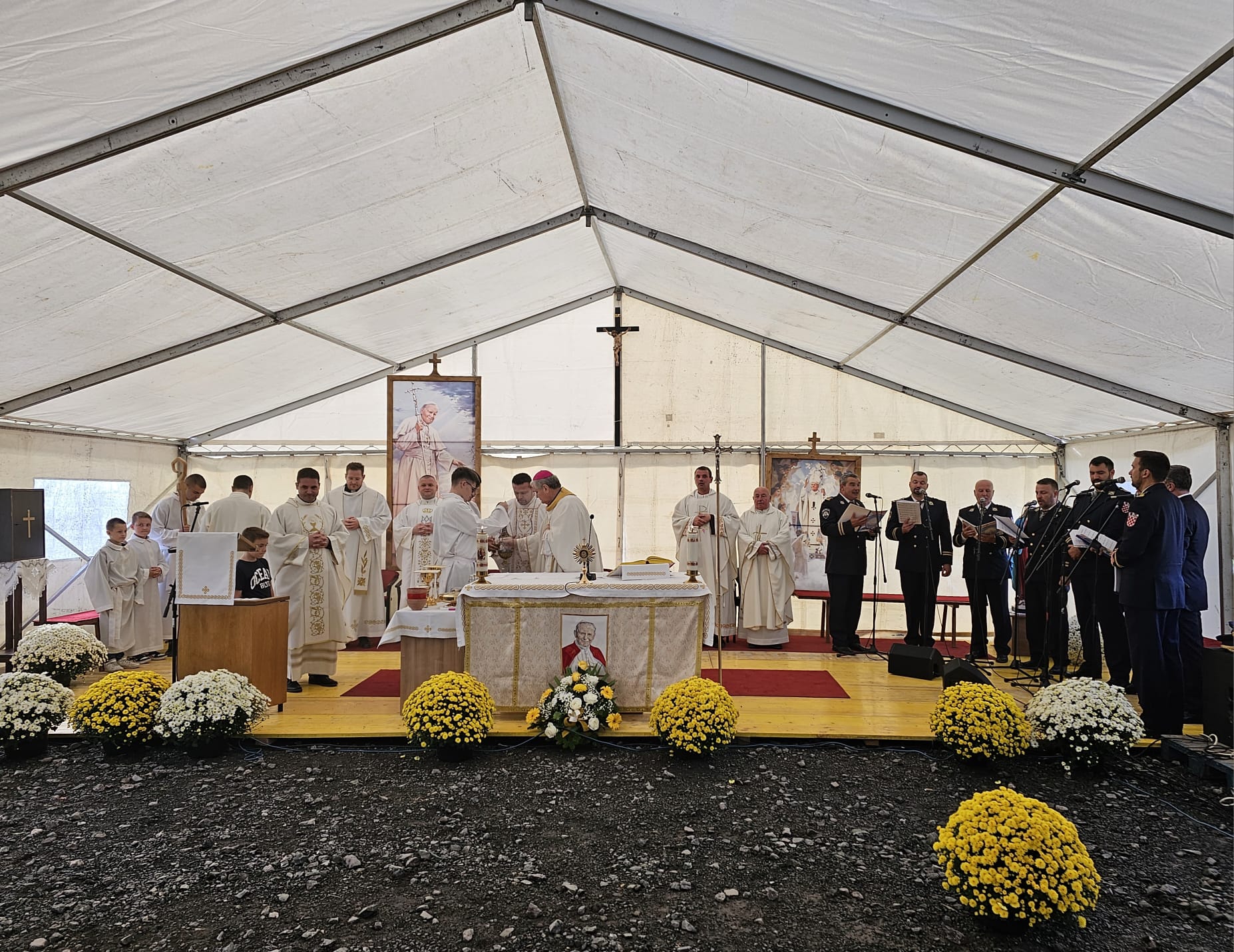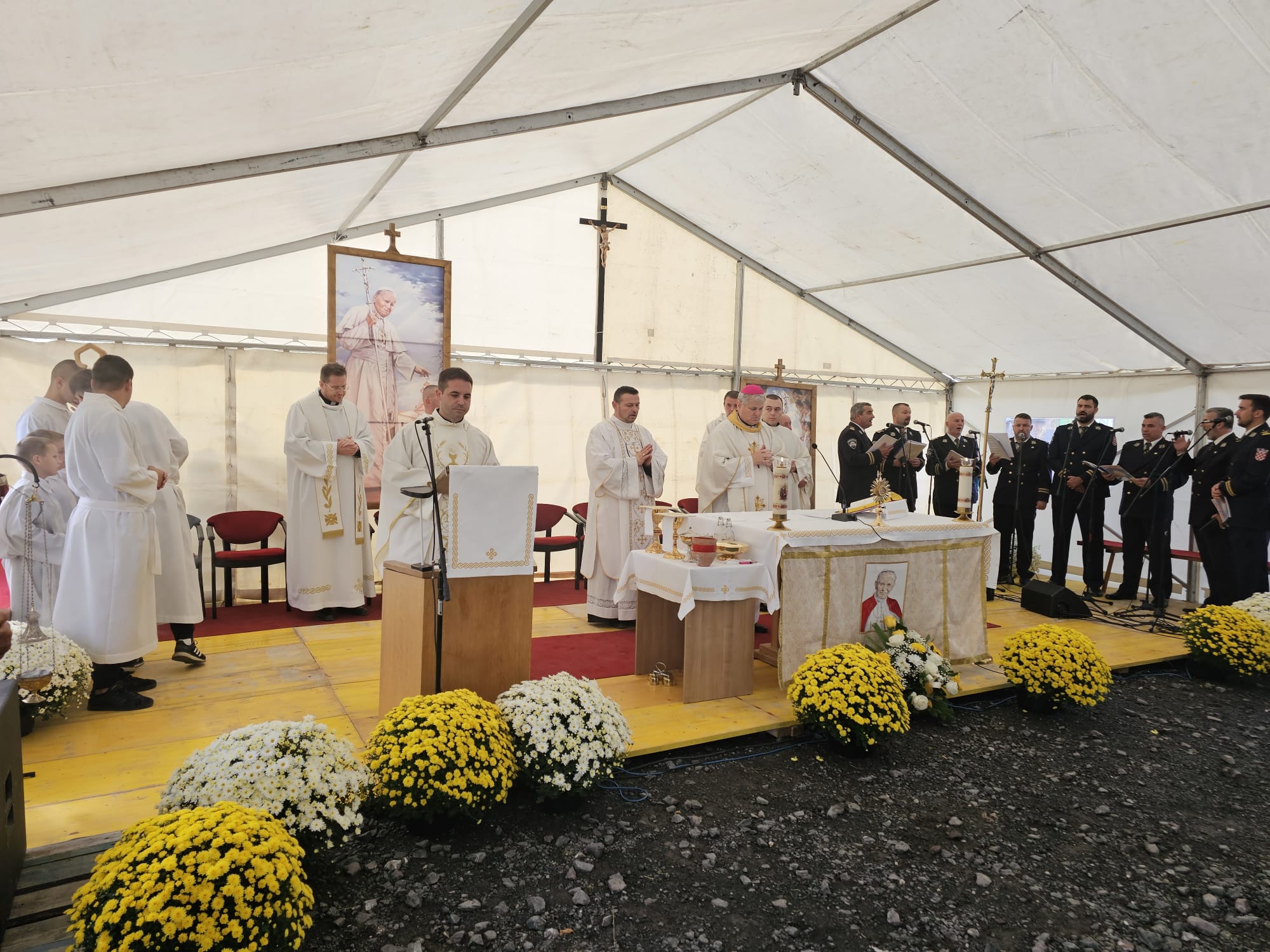 Petrinjska župa sv. Ivana Pavla II. svečano je u nedjelju 22. listopada proslavila blagdan svog nebeskog zaštitnika. Središnje misno slavlje na mjestu buduće župne crkve predvodio je sisački biskup Vlado Košić u zajedništvu sa župnikom fra Antunom Radovanićem, predsjednikom Odbora za gradnju crkve fra Matom Bašićem i više svećenika.