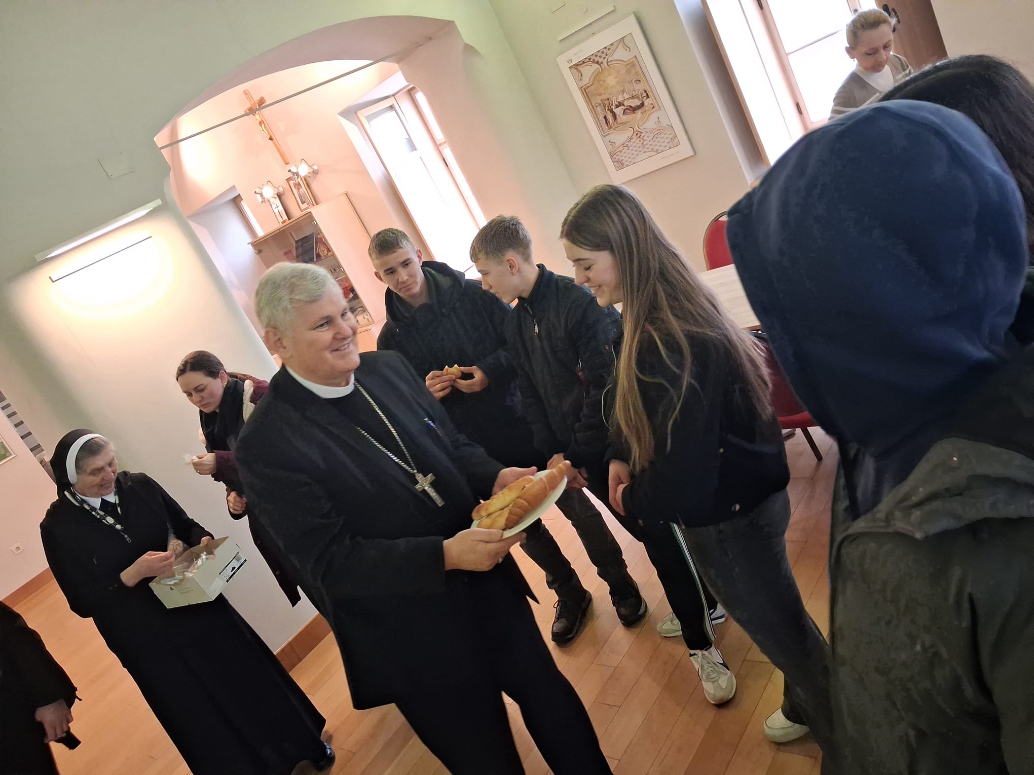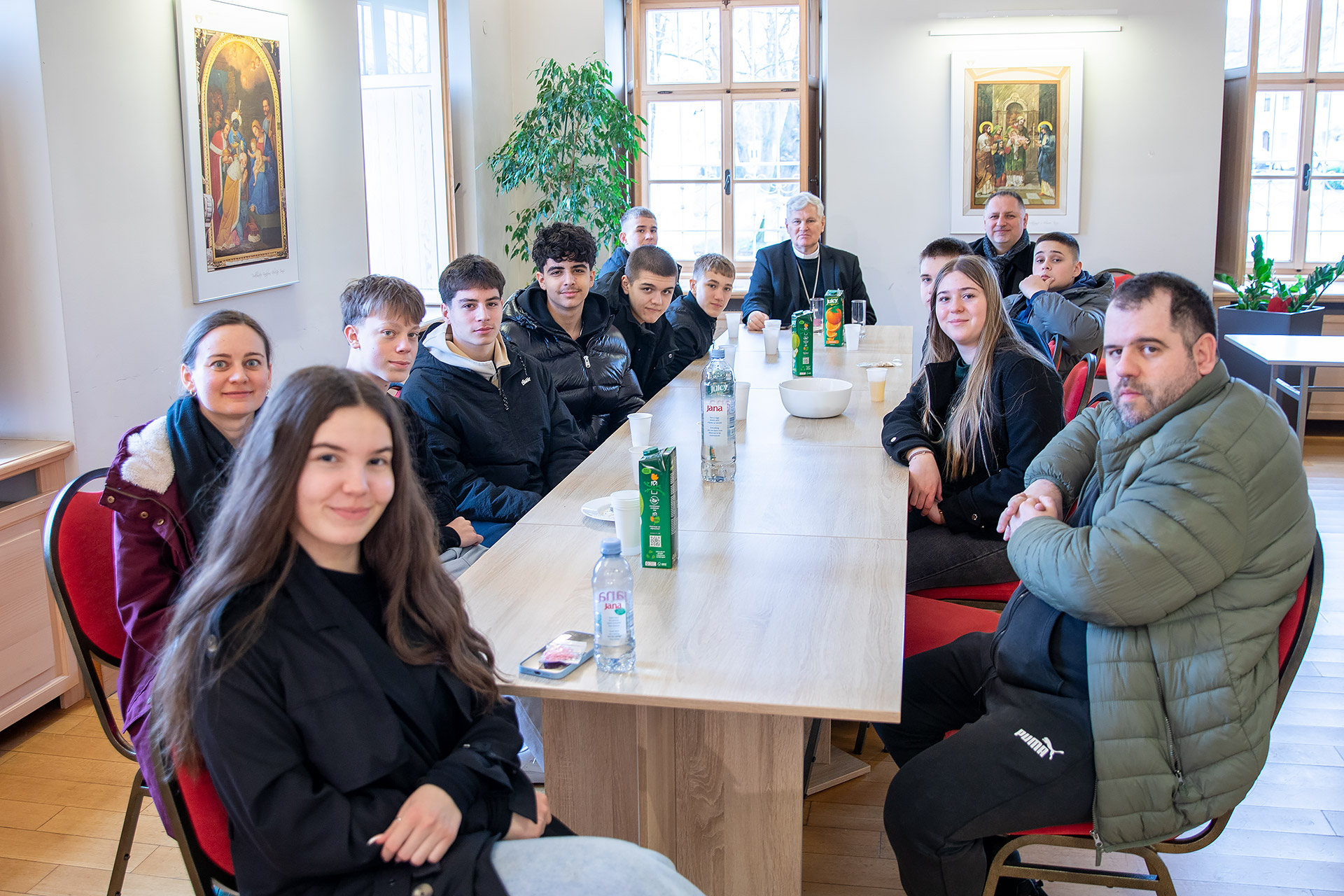 Nakon toga pješice su se uputili prema Velikom Kaptolu, sjedištu Sisačke biskupije, gdje ih je srdačno primio sisački biskup mons. Vlado Košić. Učenici su upoznali prostore biskupije te proveli vrijeme u otvorenom i poticajnom razgovoru s biskupom, koji ih je ohrabrio u njihovu rastu i obrazovanju.